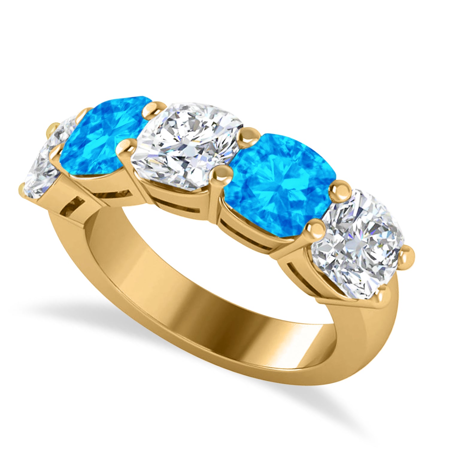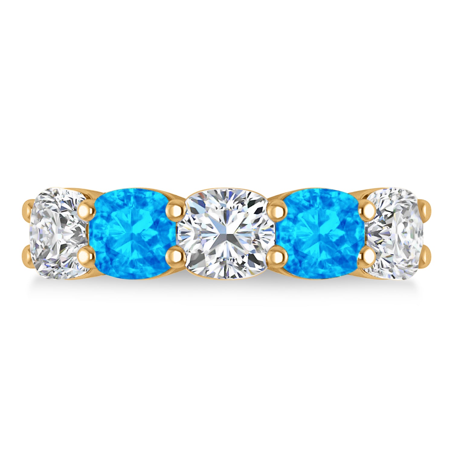 Cushion Diamond & Blue Topaz Five Stone Ring 14k Yellow Gold (5.20ct)