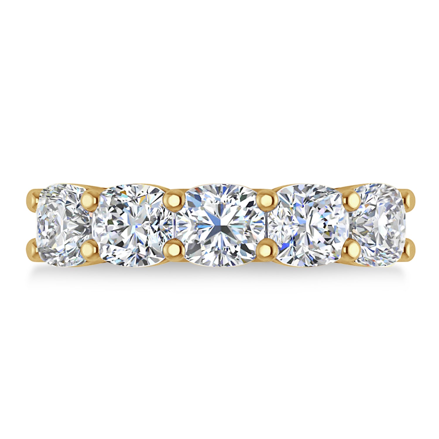 Cushion Diamond Five Stone Wedding Band 14k Yellow Gold (3.75ct)