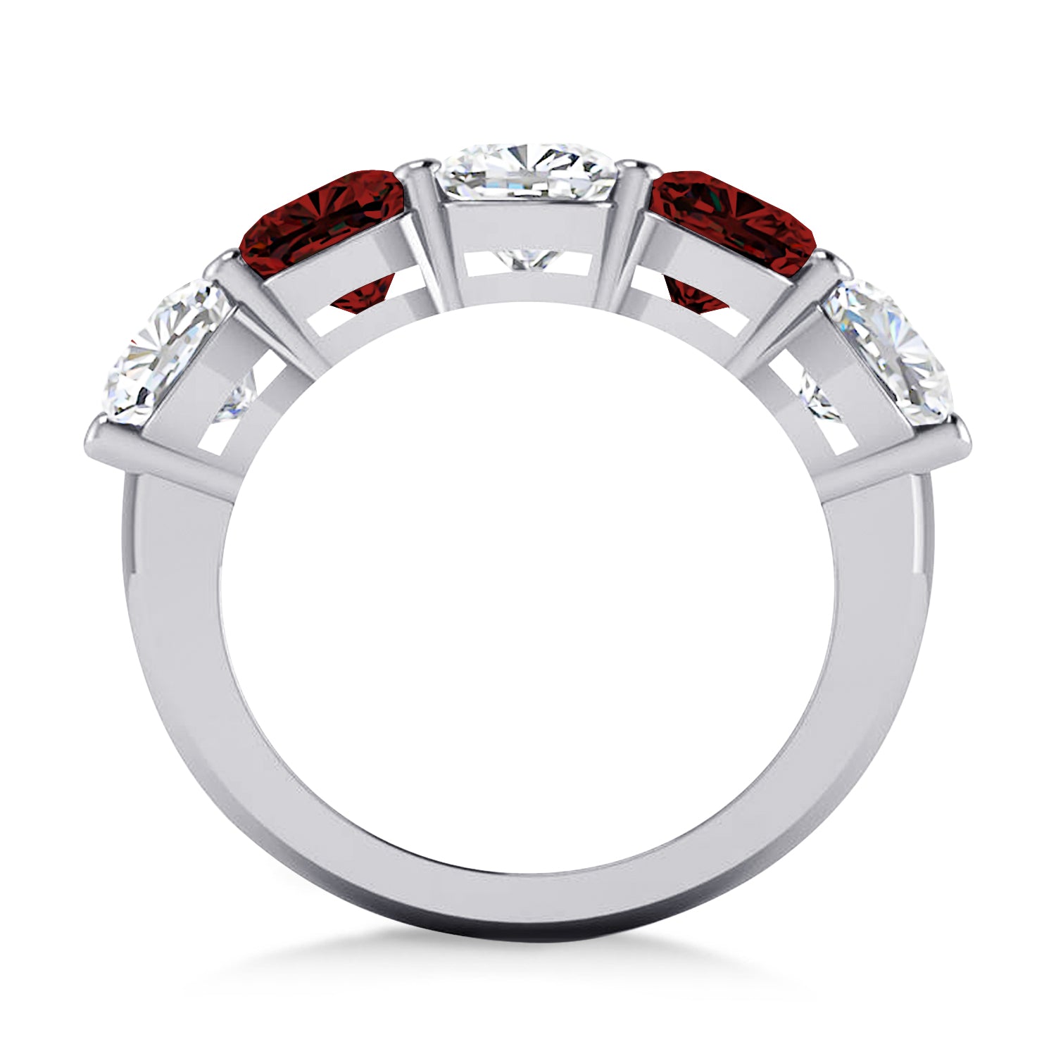 Cushion Diamond & Garnet Five Stone Ring 14k White Gold (5.20ct)