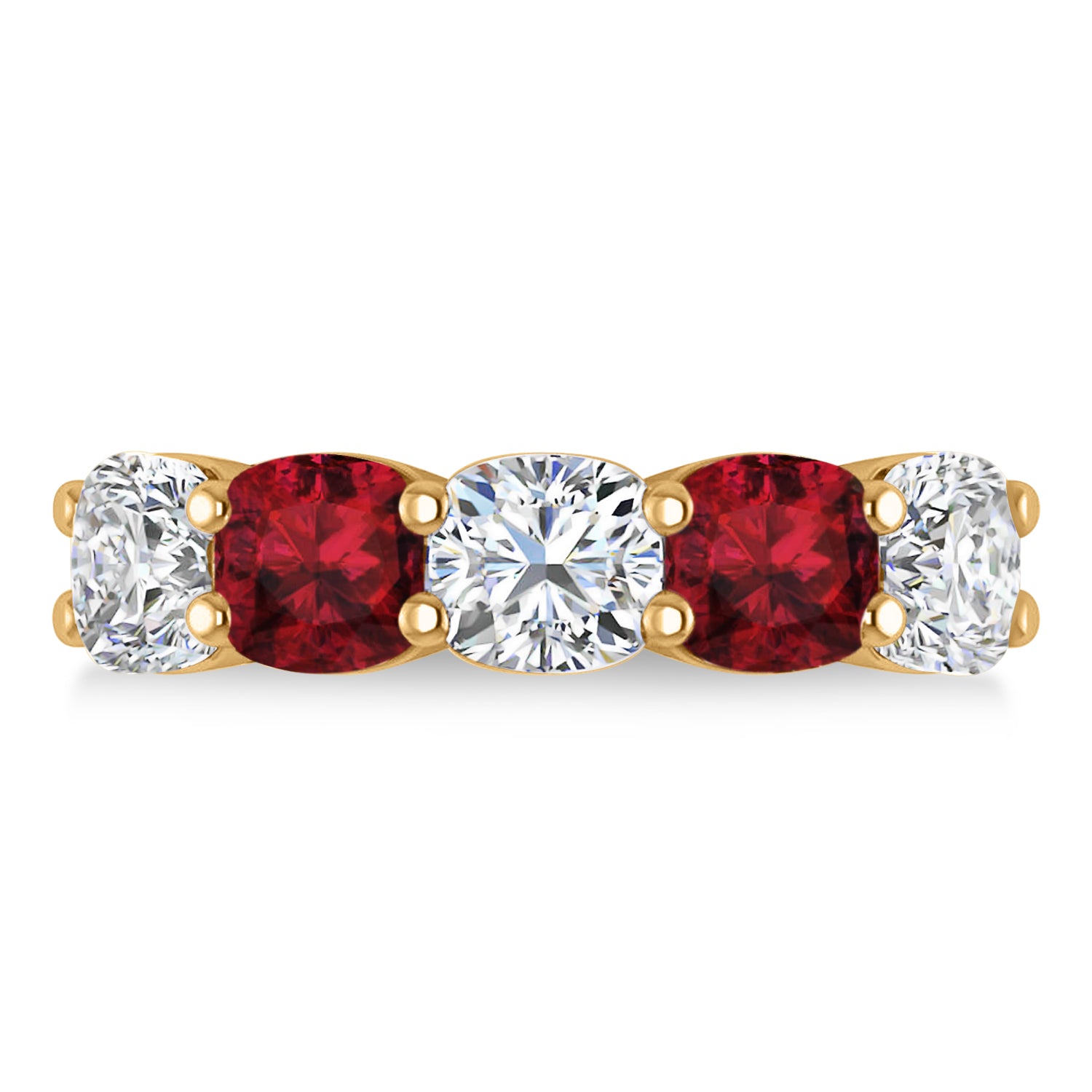 Cushion Diamond & Garnet Five Stone Ring 14k Yellow Gold (5.20ct)