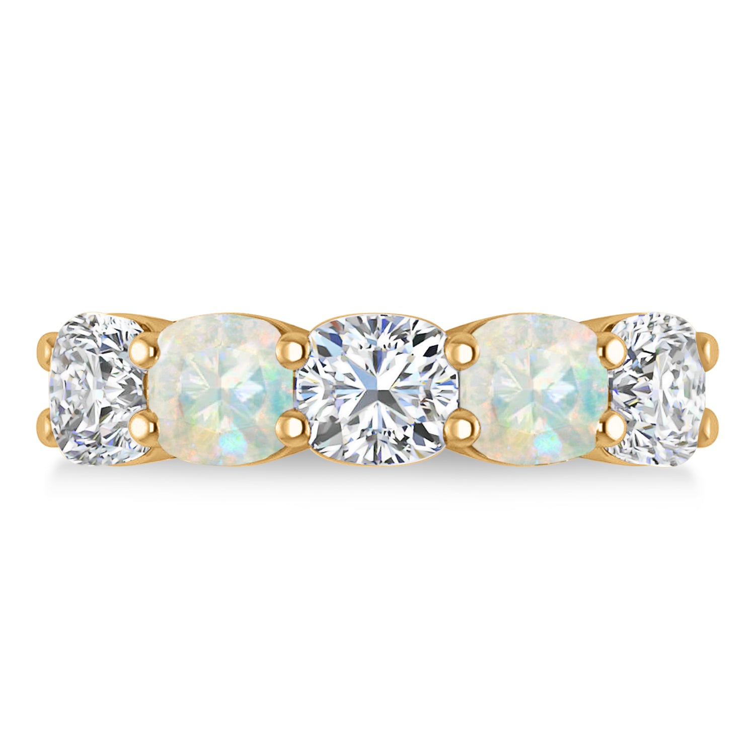 Cushion Diamond & Opal Five Stone Ring 14k Yellow Gold (5.20ct)