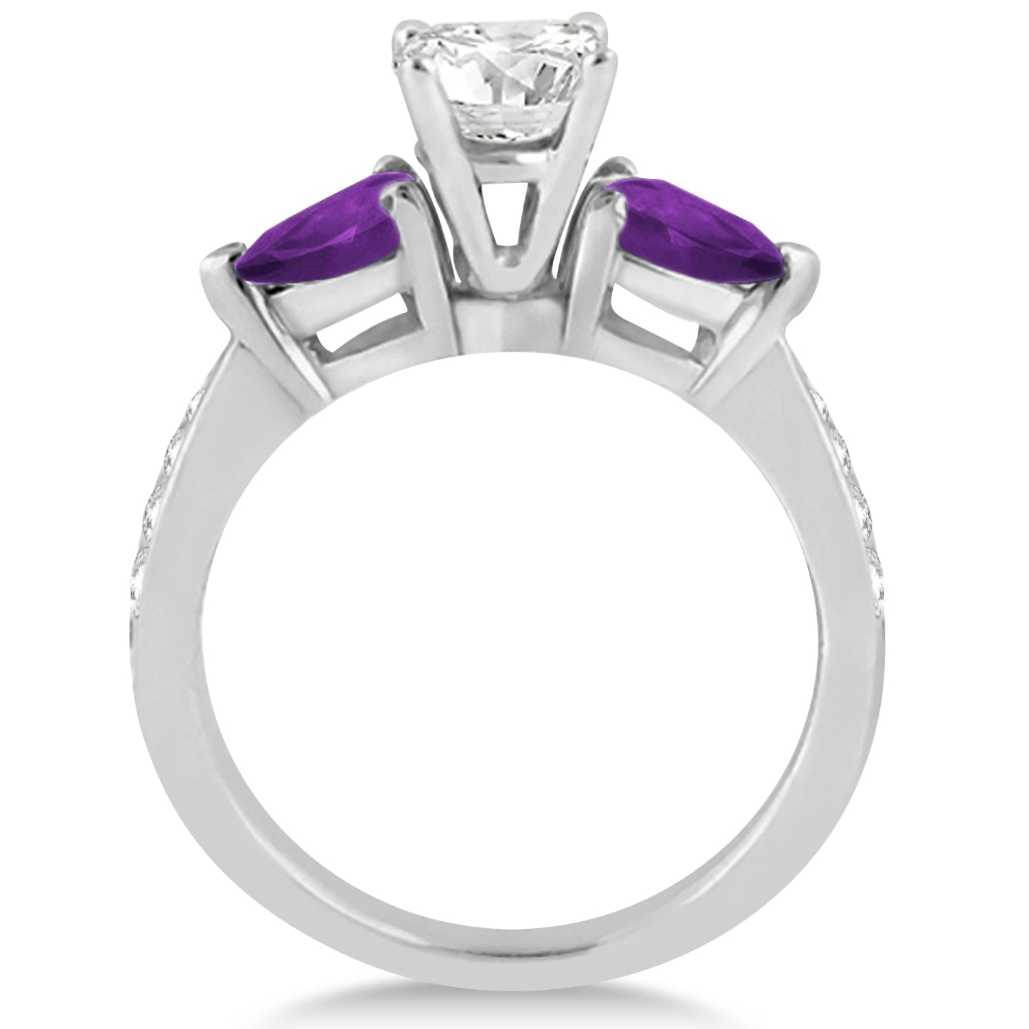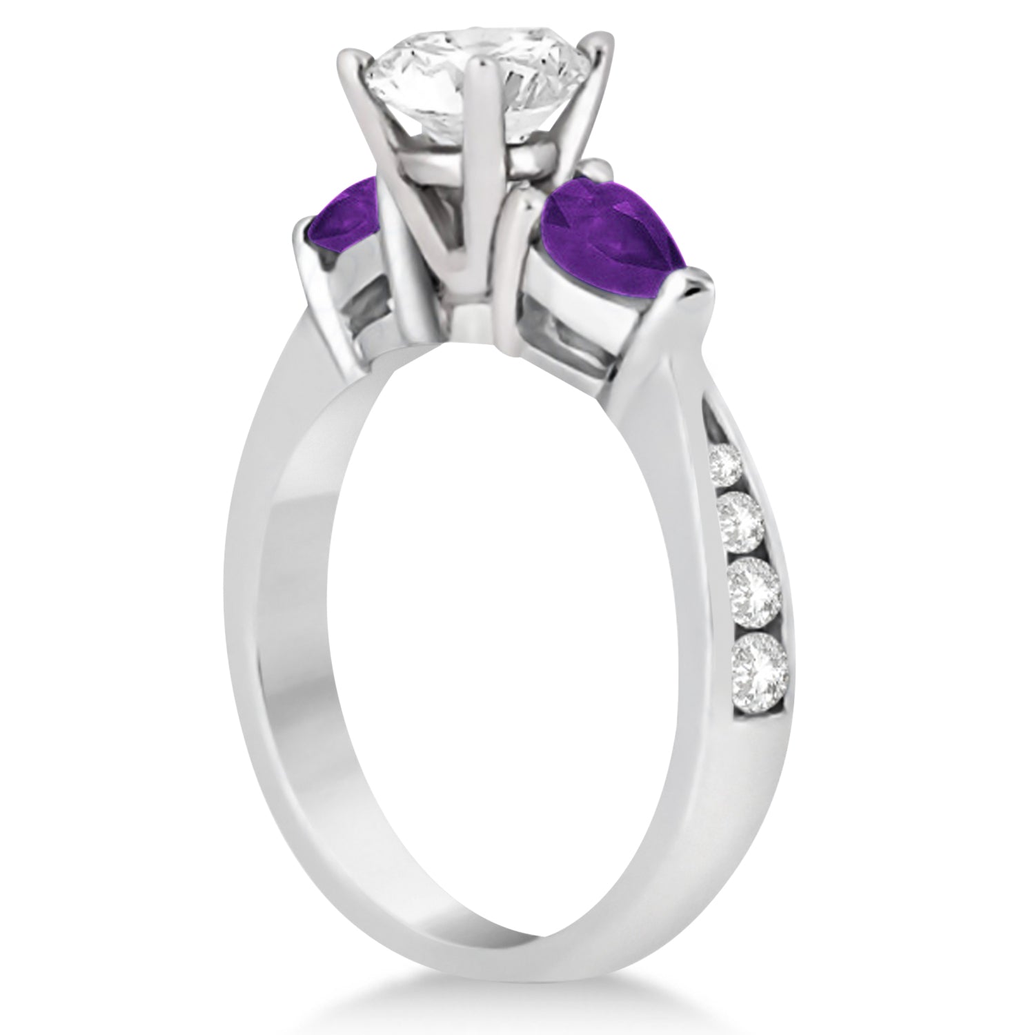 When you're ready to pop the question, surprise her with this fancy 3 stone diamond and pear cut amethyst engagement ring featuring amethyst gemstones and brilliant round diamonds.