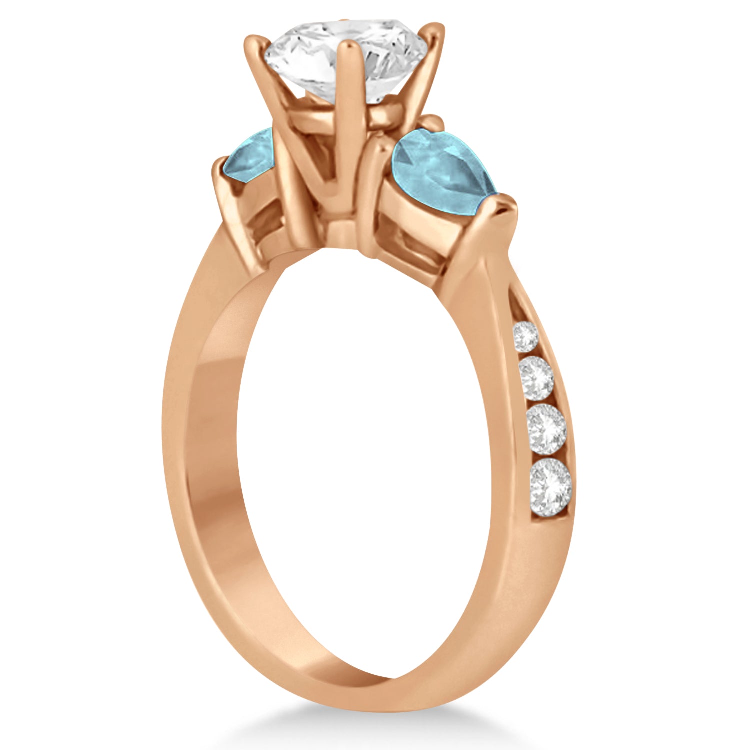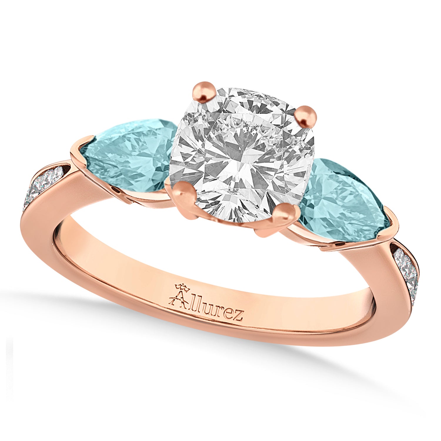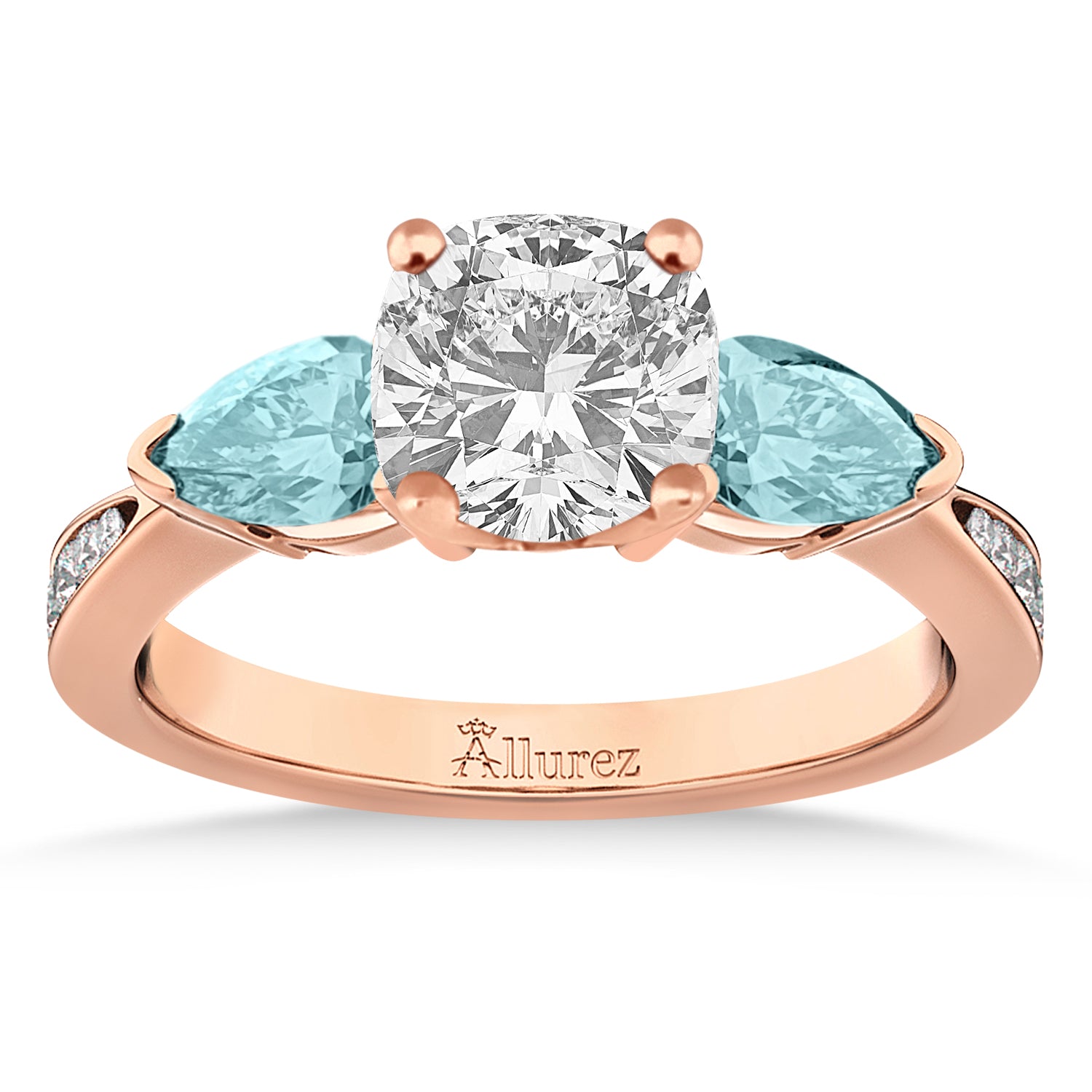Cushion Diamond & Pear Aquamarine Engagement Ring 14k Rose Gold (1.29c