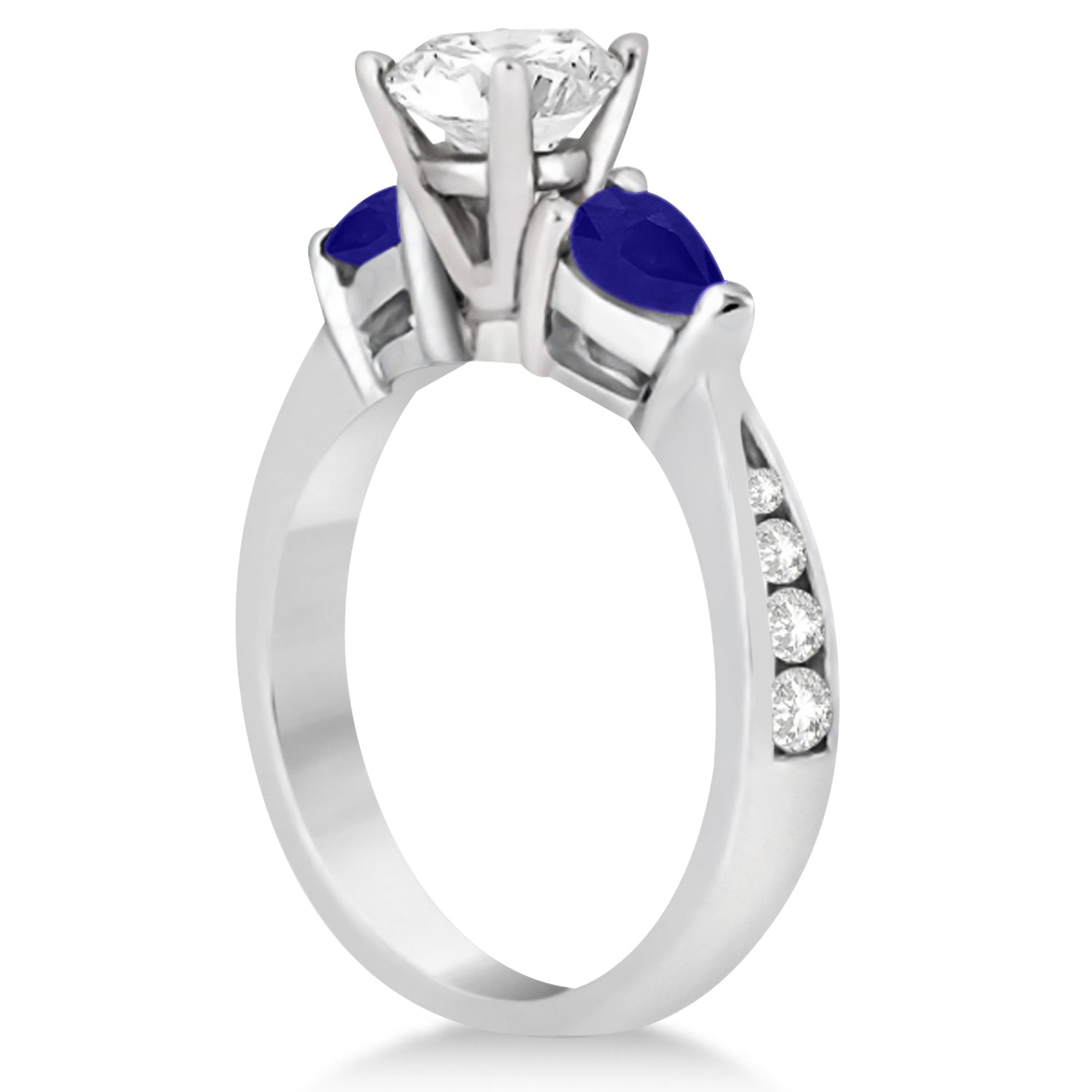 When you're ready to pop the question, surprise her with this fancy 3 stone diamond and pear cut blue sapphire engagement ring featuring blue sapphire gemstones and brilliant round diamonds.