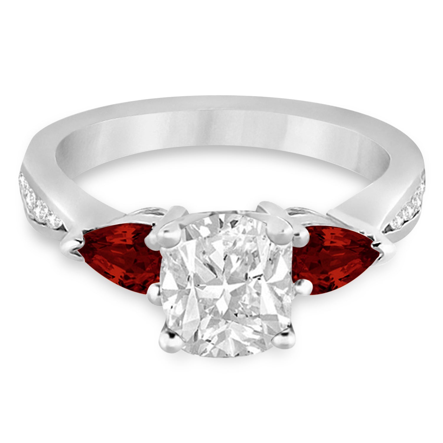 Cushion Diamond & Pear Garnet Engagement Ring 14k White Gold (1.29ct)