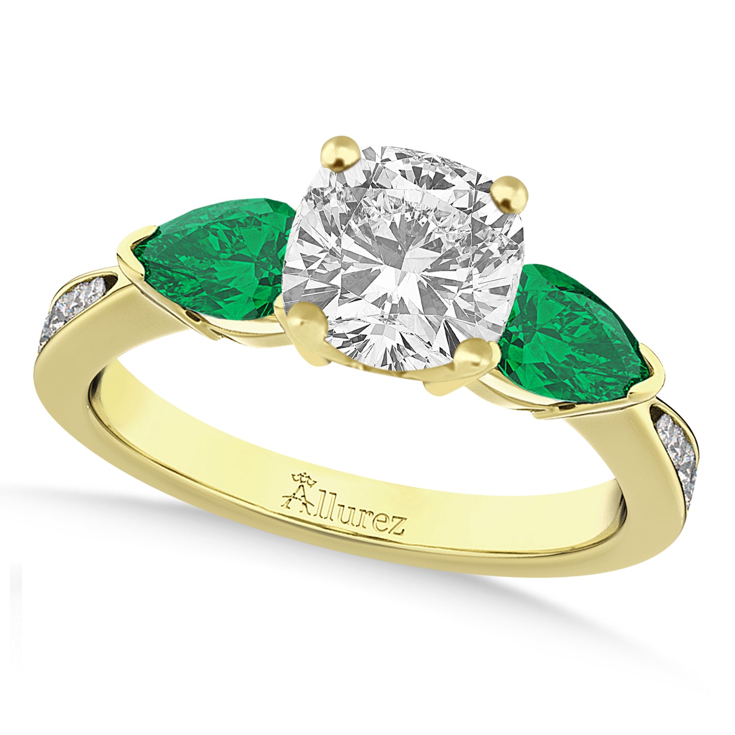 Cushion Diamond & Pear Green Emerald Engagement Ring 14k Yellow Gold (