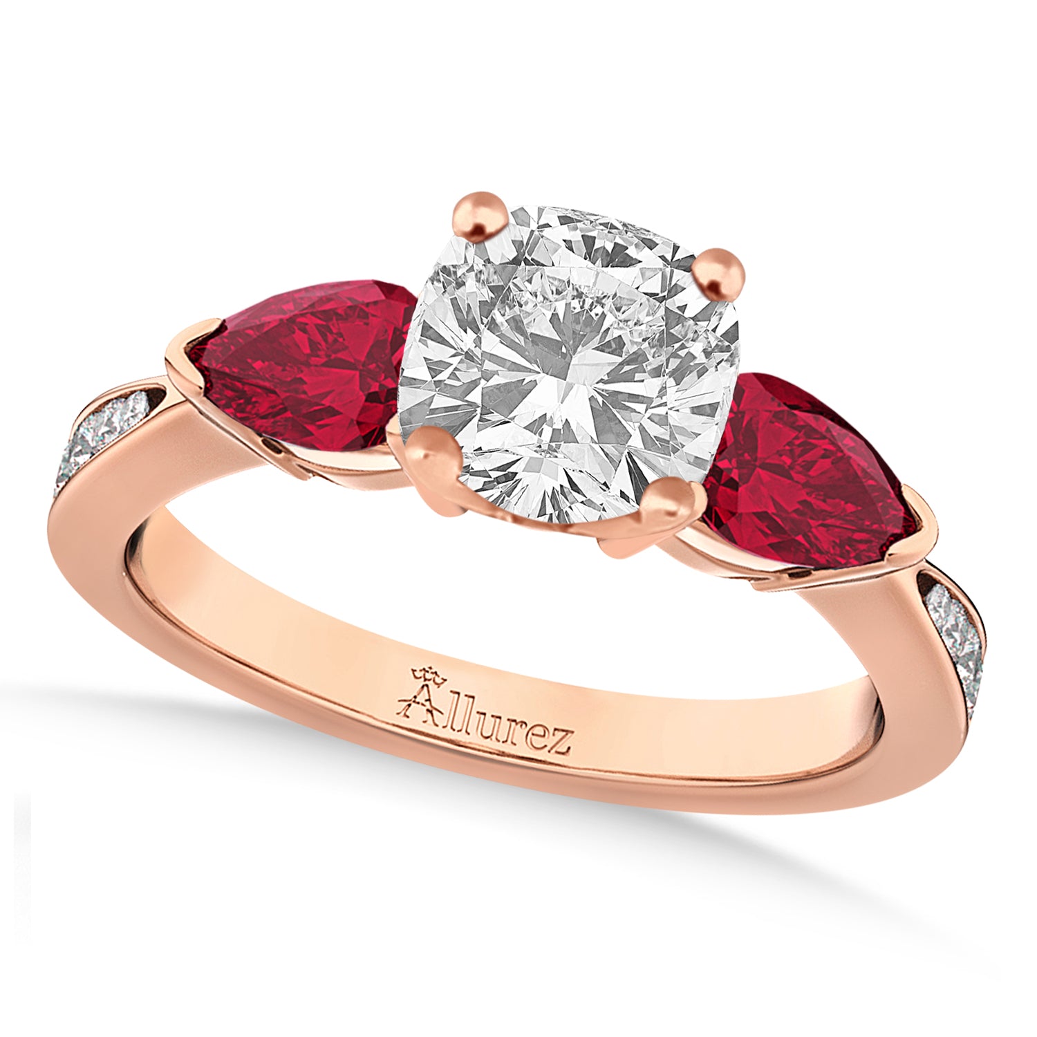 Cushion Diamond & Pear Ruby Gemstone Engagement Ring 14k Rose Gold (1.