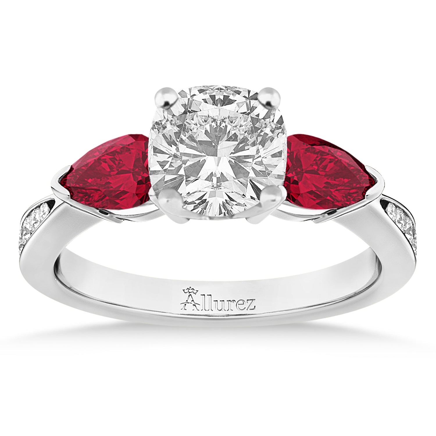 Cushion Diamond & Pear Ruby Gemstone Engagement Ring 14k White Gold (1