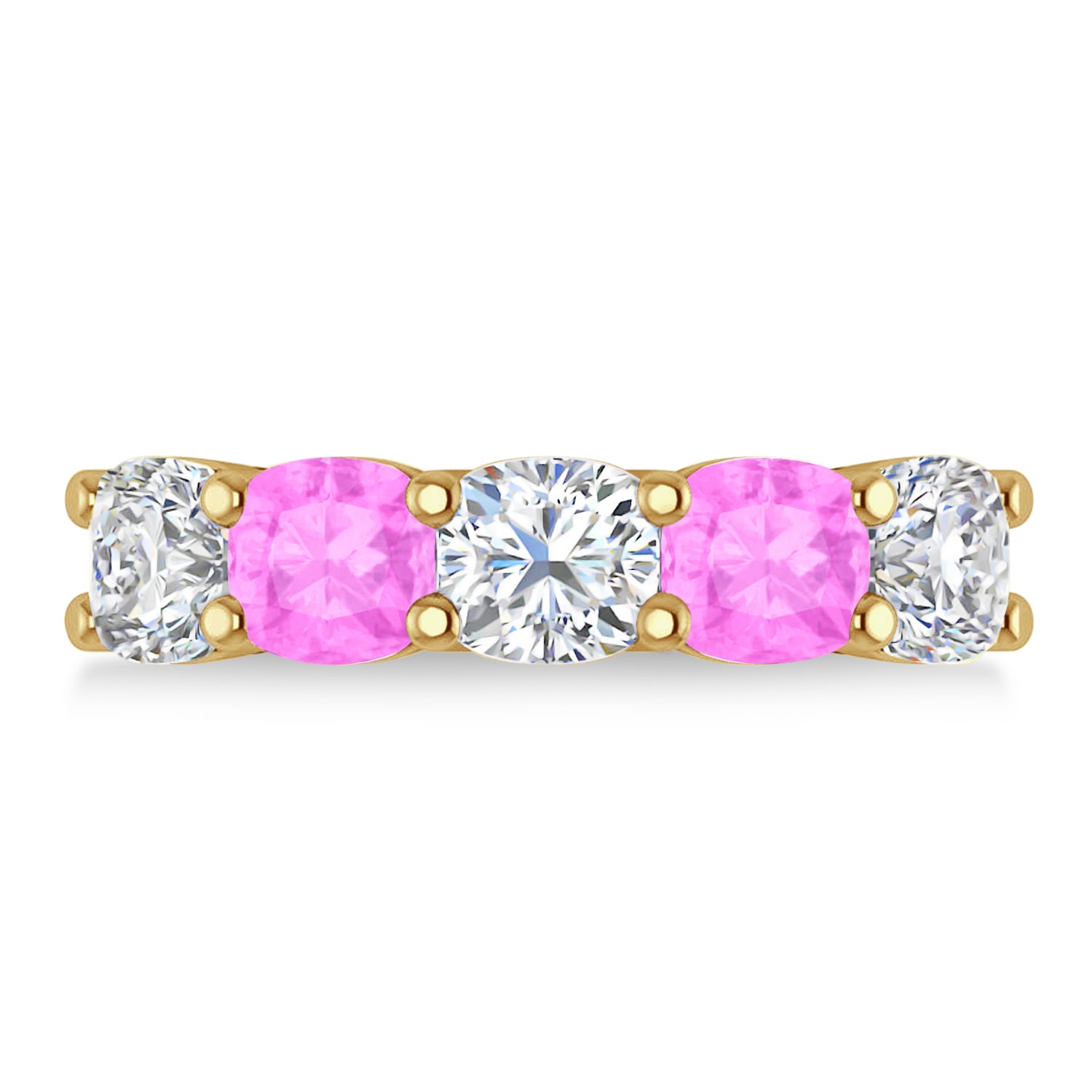 Cushion Diamond & Pink Sapphire Five Stone Ring 14k Yellow Gold (4.05ct)