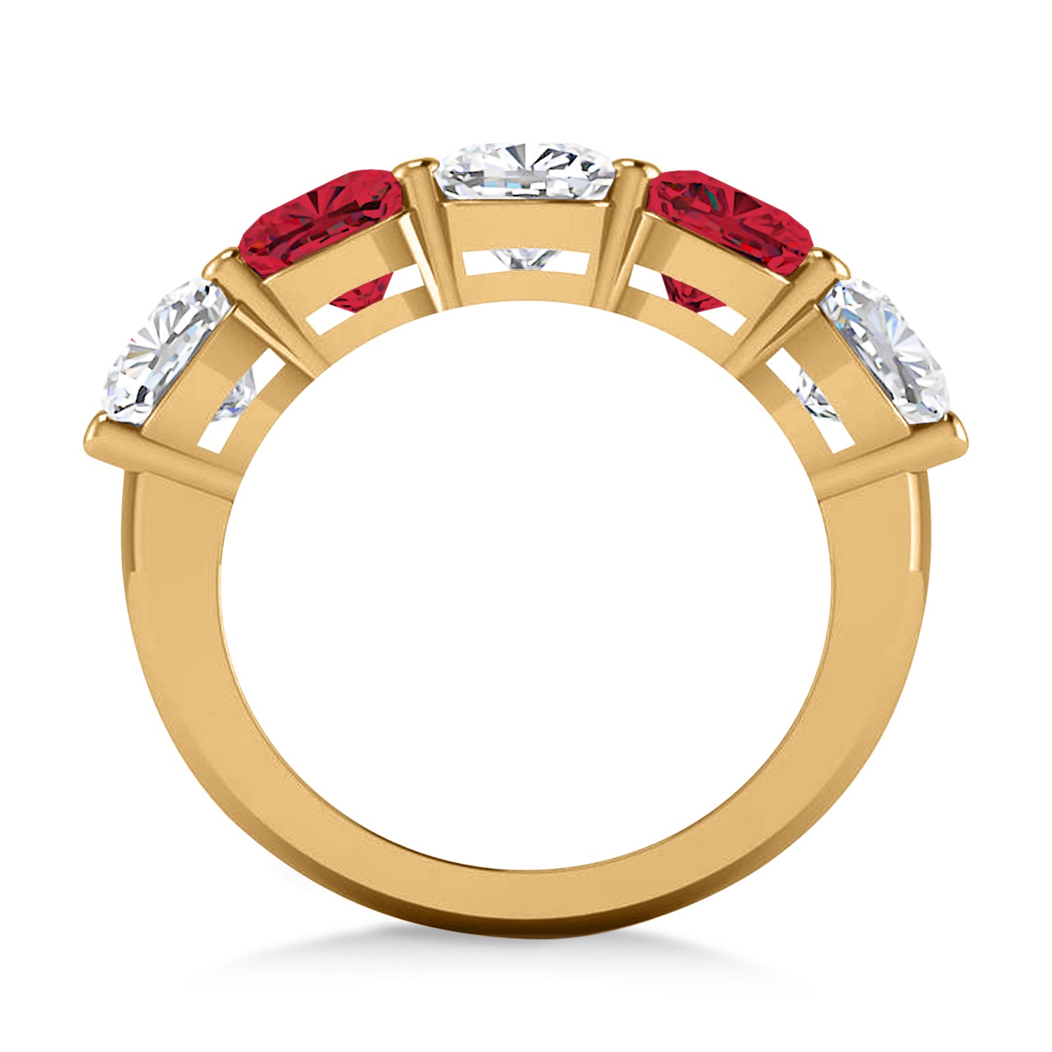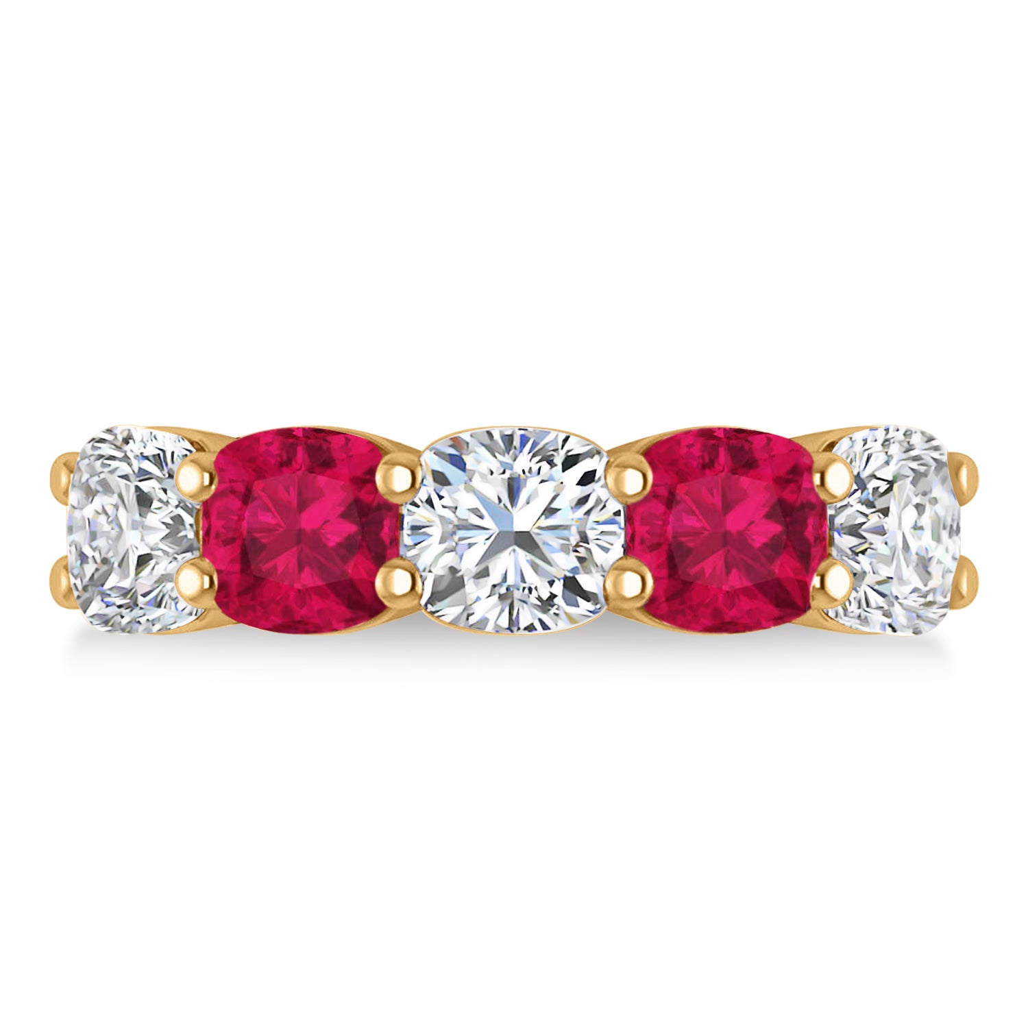 Cushion Diamond & Ruby Five Stone Ring 14k Yellow Gold (5.20ct)