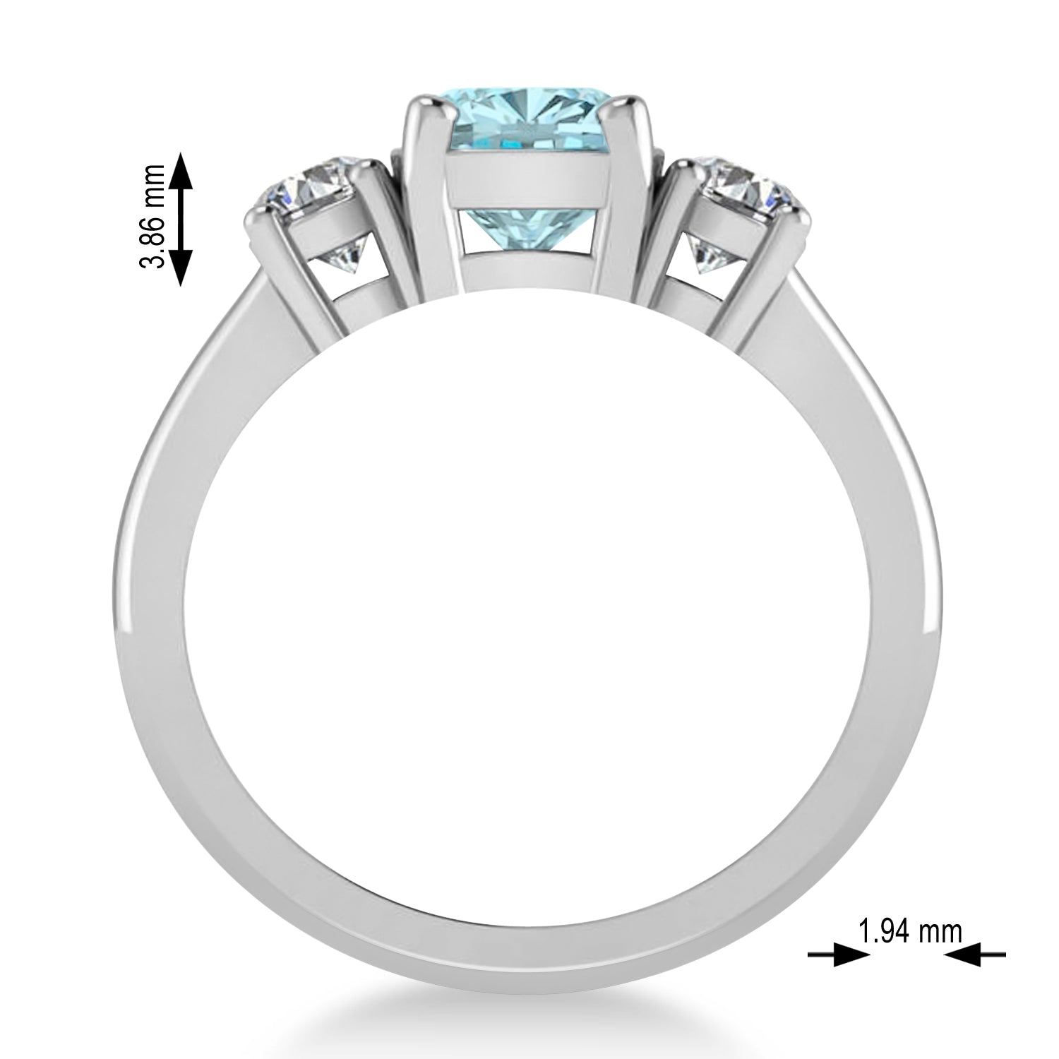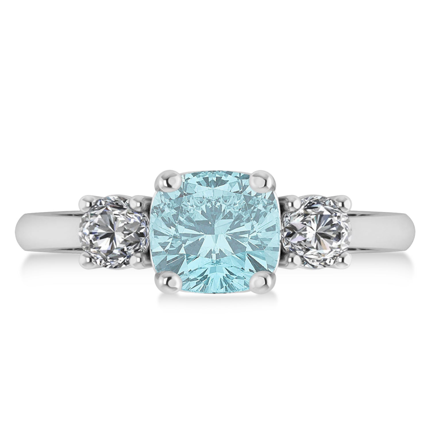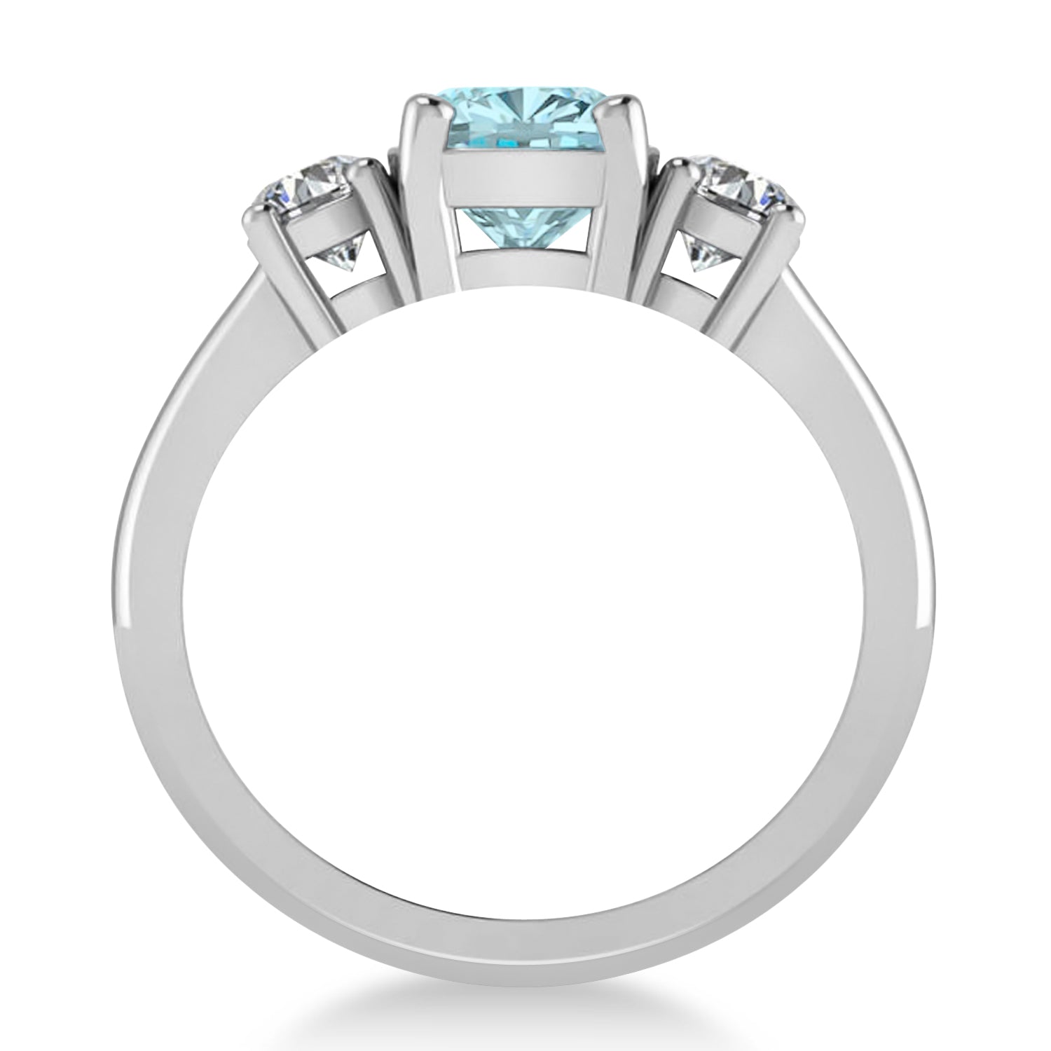 Cushion & Round 3-Stone Aquamarine & Diamond Engagement Ring 14k White Gold (2.50ct)