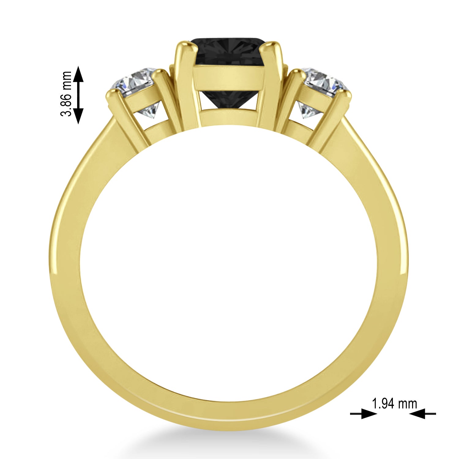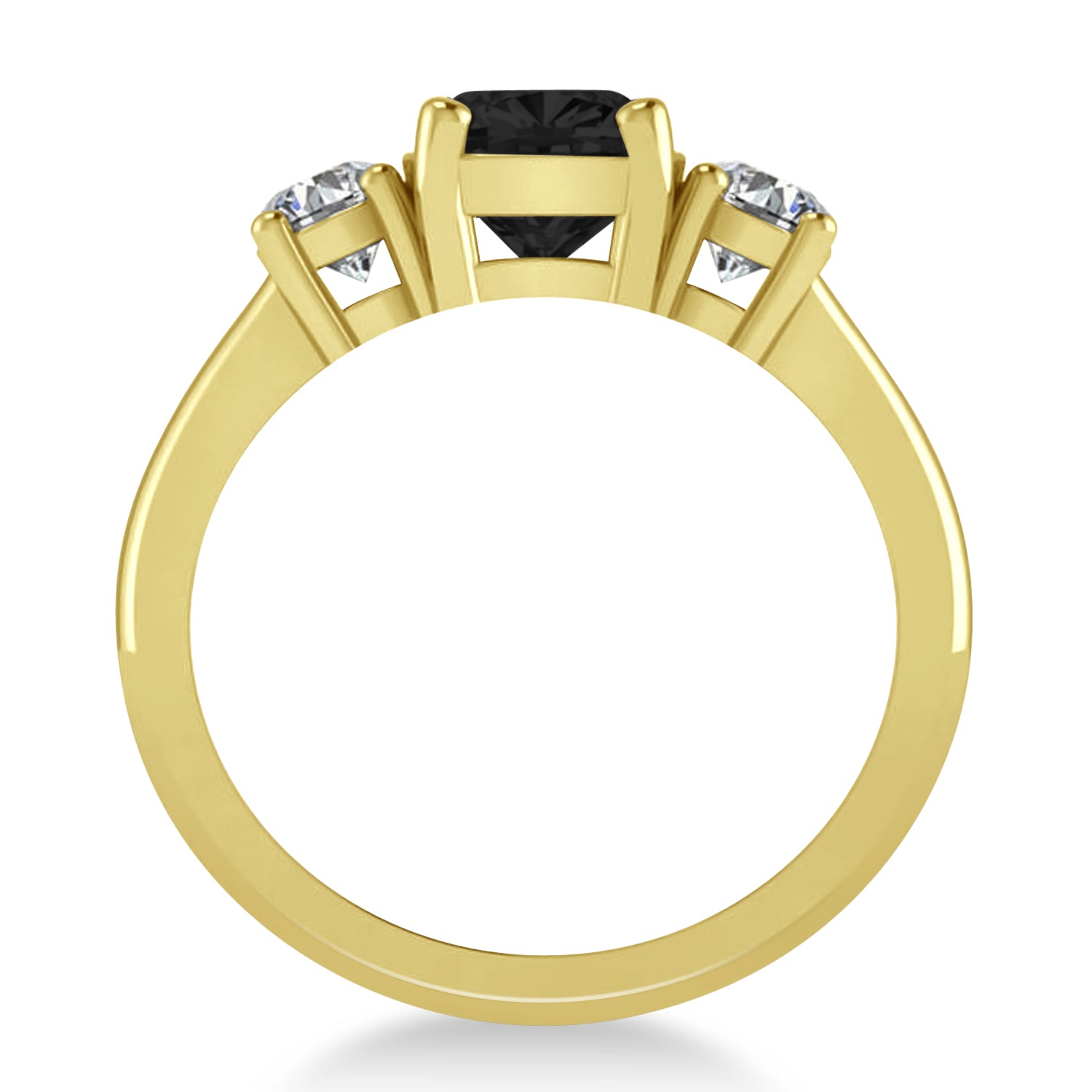 Cushion & Round 3-Stone Black & White Diamond Engagement Ring 14k Yellow Gold (2.50ct)