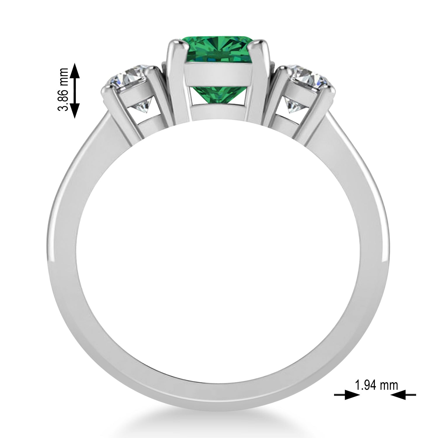 Cushion & Round 3-Stone Emerald & Diamond Engagement Ring 14k White Go