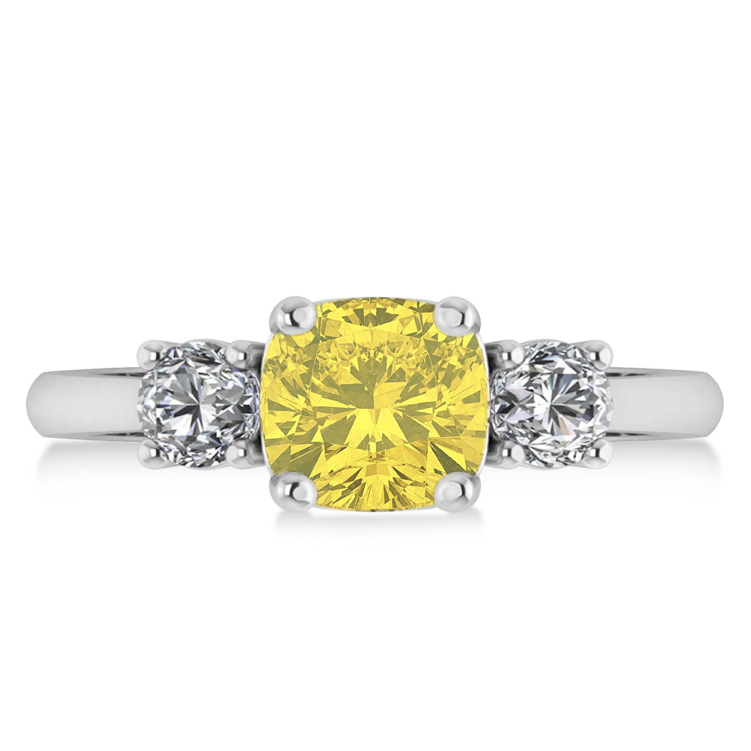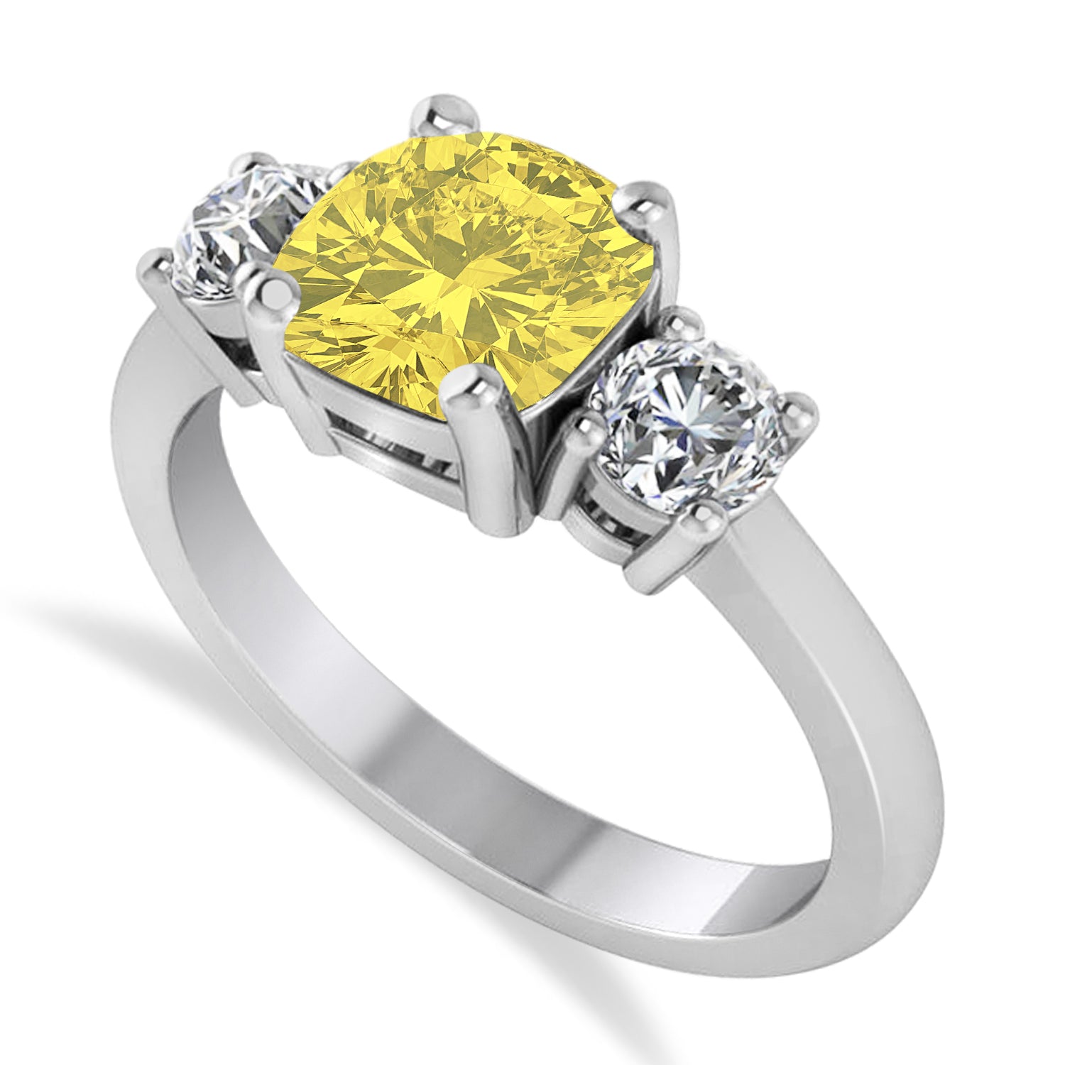 Cushion & Round 3-Stone Yellow & White Diamond Engagement Ring 14k White Gold (2.50ct)