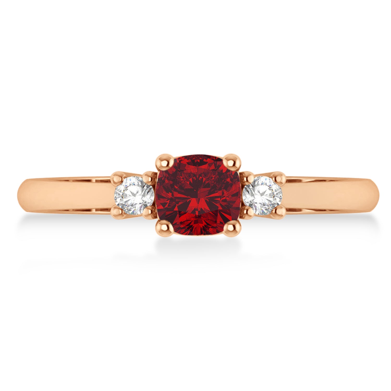 Cushion Ruby & Diamond Three-Stone Engagement Ring 14k Rose Gold (0.60