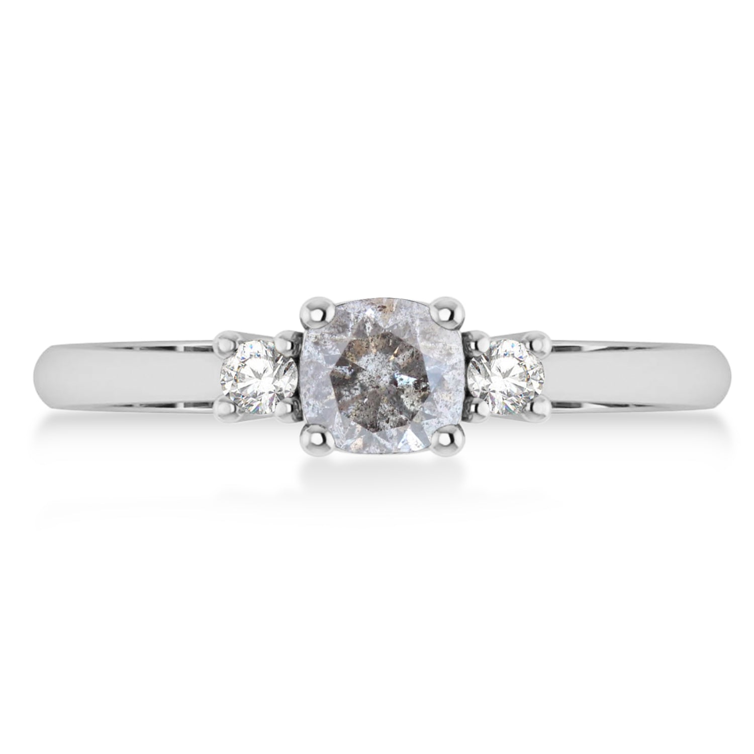 Cushion Salt & Pepper & White Diamond Three-Stone Engagement Ring 14k White Gold (0.60ct)