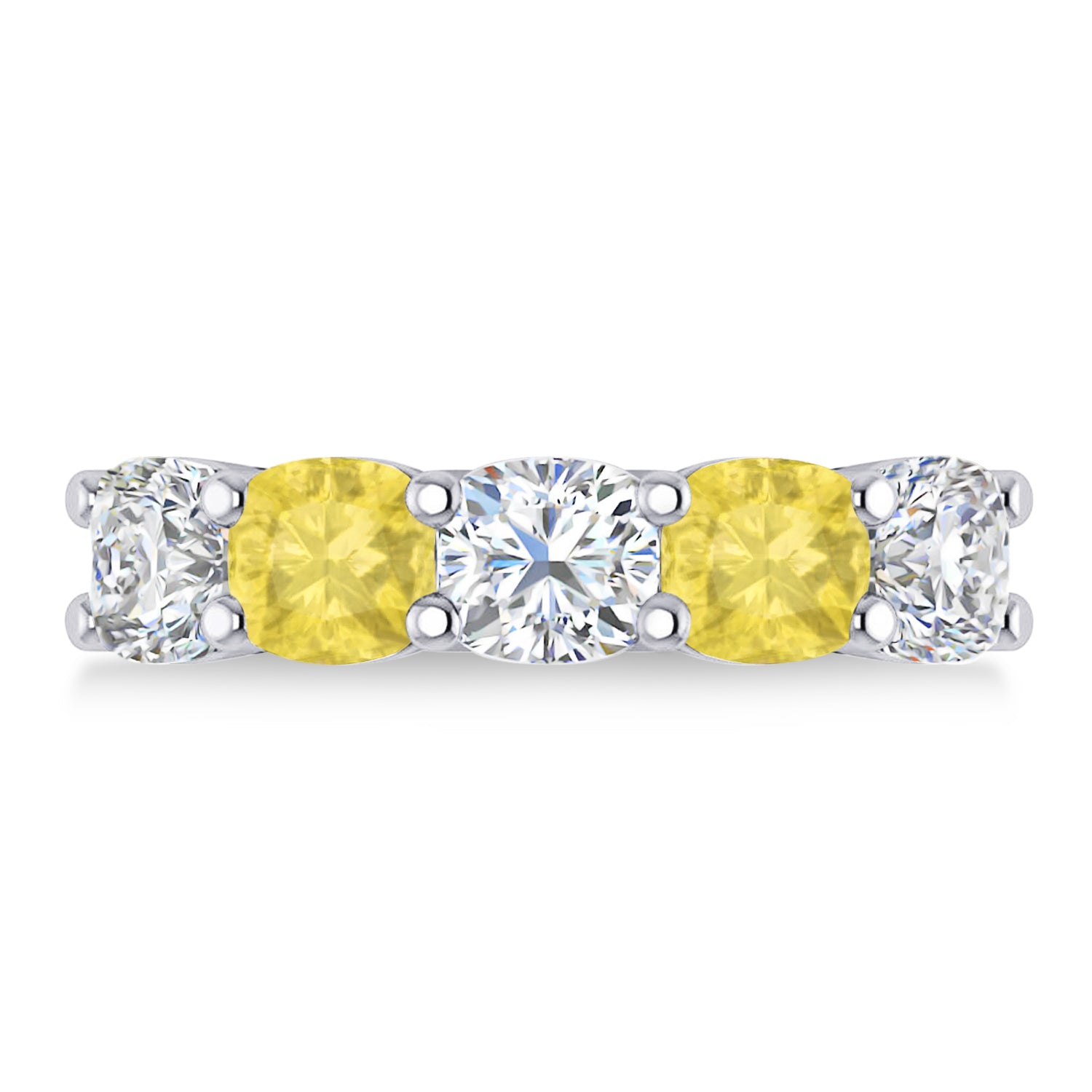 Cushion Yellow & White Diamond Five Stone Ring 14k White Gold (3.75ct)