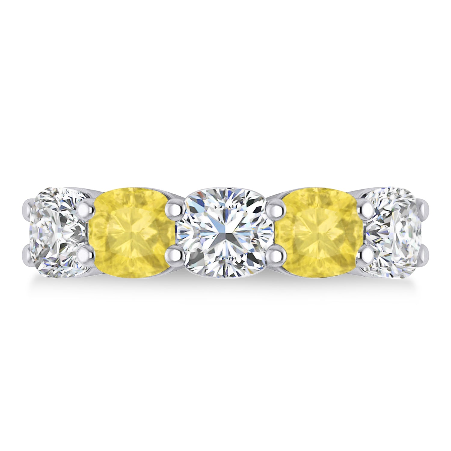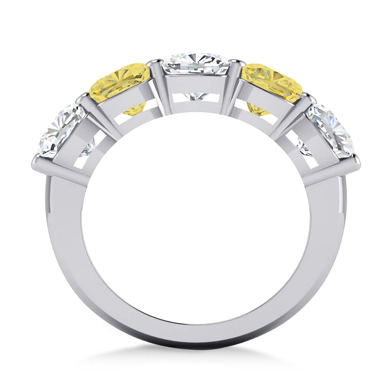 Cushion Yellow & White Diamond Five Stone Ring 14k White Gold (5.00ct)