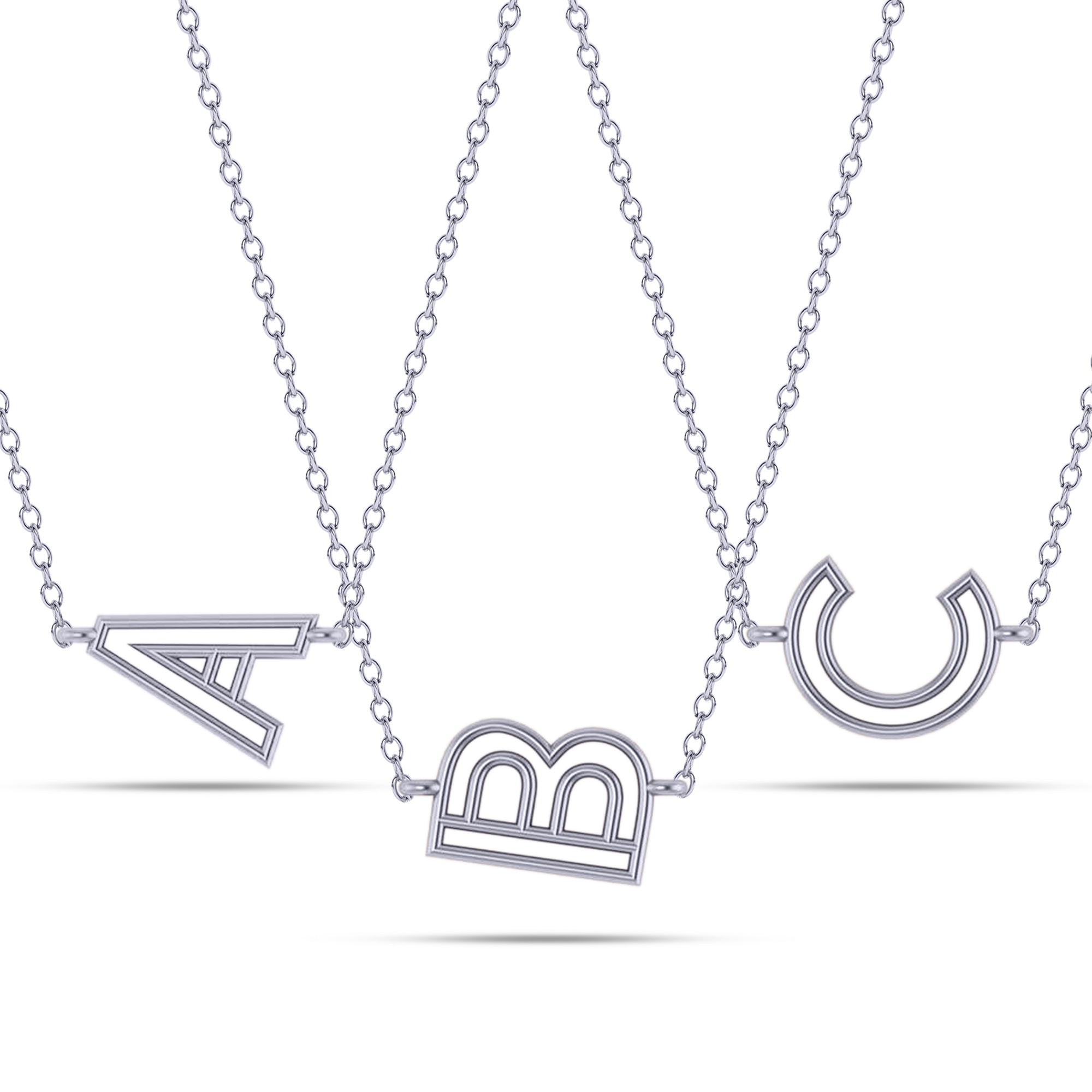 Custom Letter Charm Initial Pendant Necklace 14K White Gold