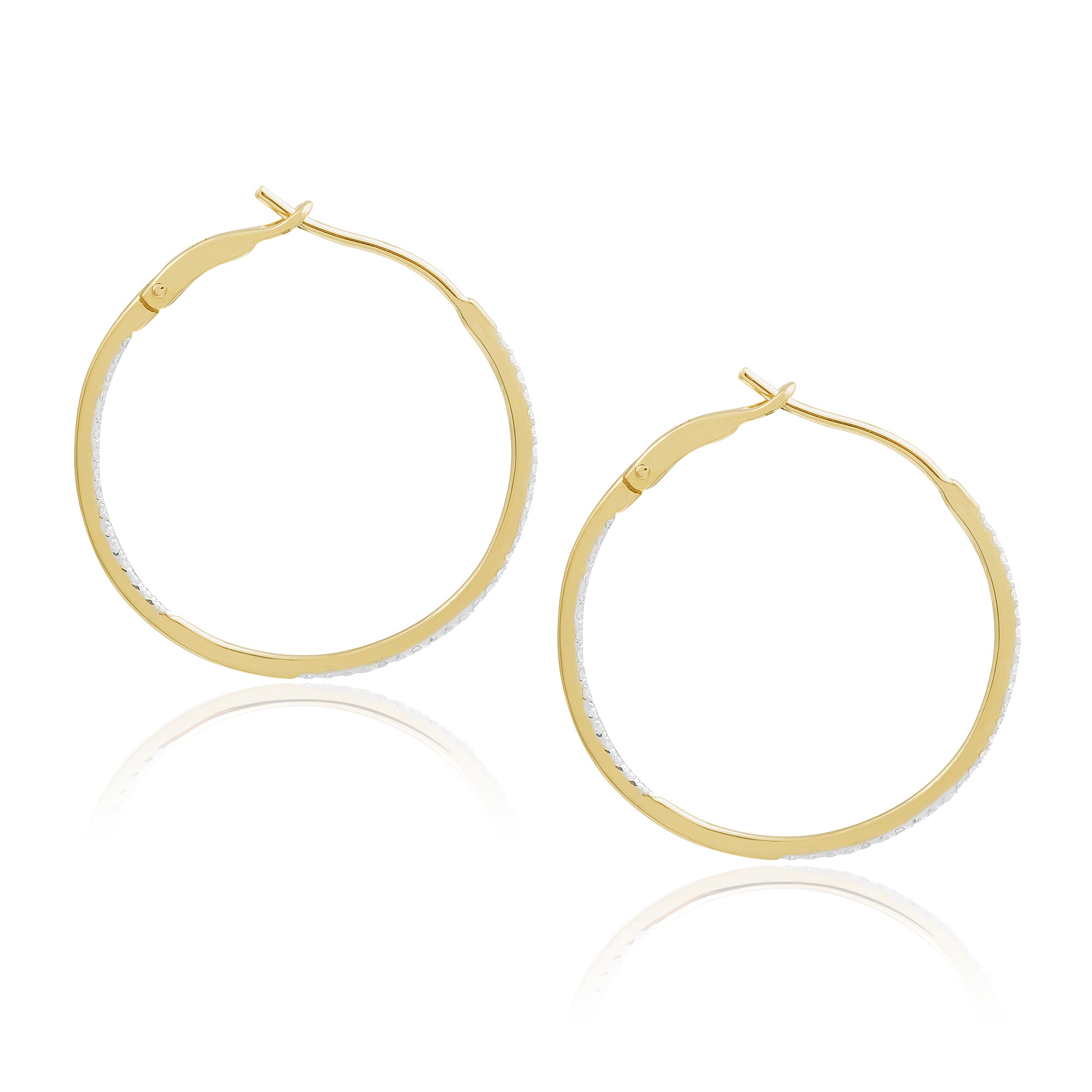 Diamond 25mm Round Skinny Hoop Earrings 14K Yellow Gold (0.20CT)