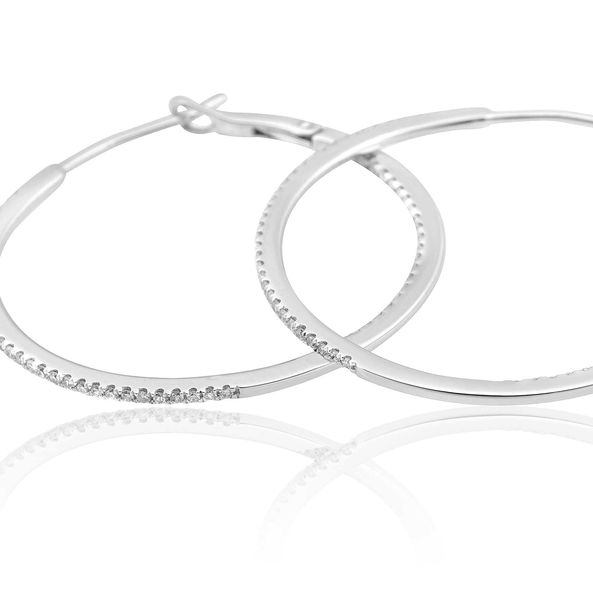 Diamond 30mm Round Skinny Hoop Earrings 14K White Gold (0.26CT)