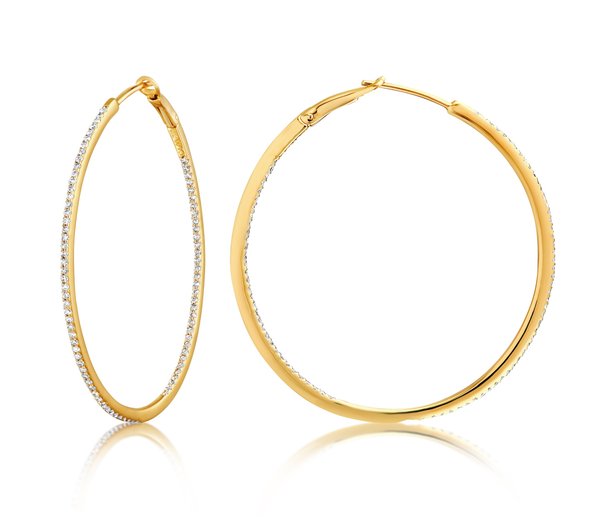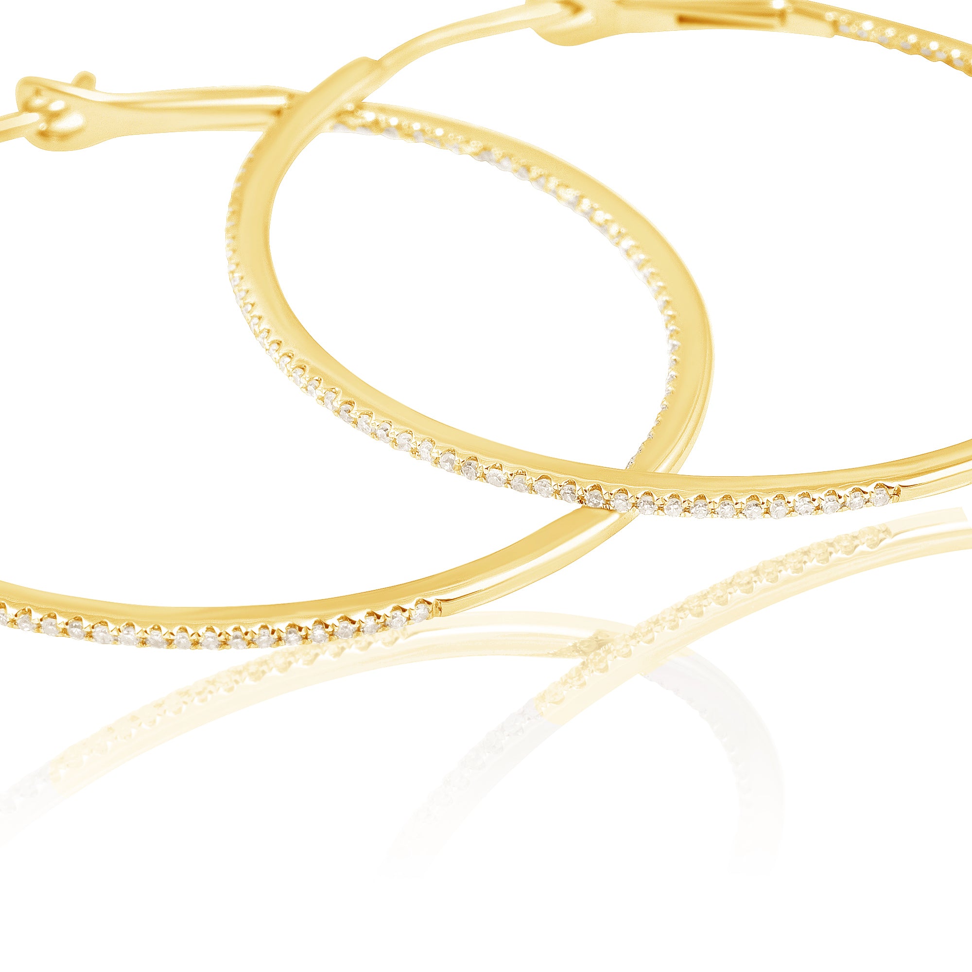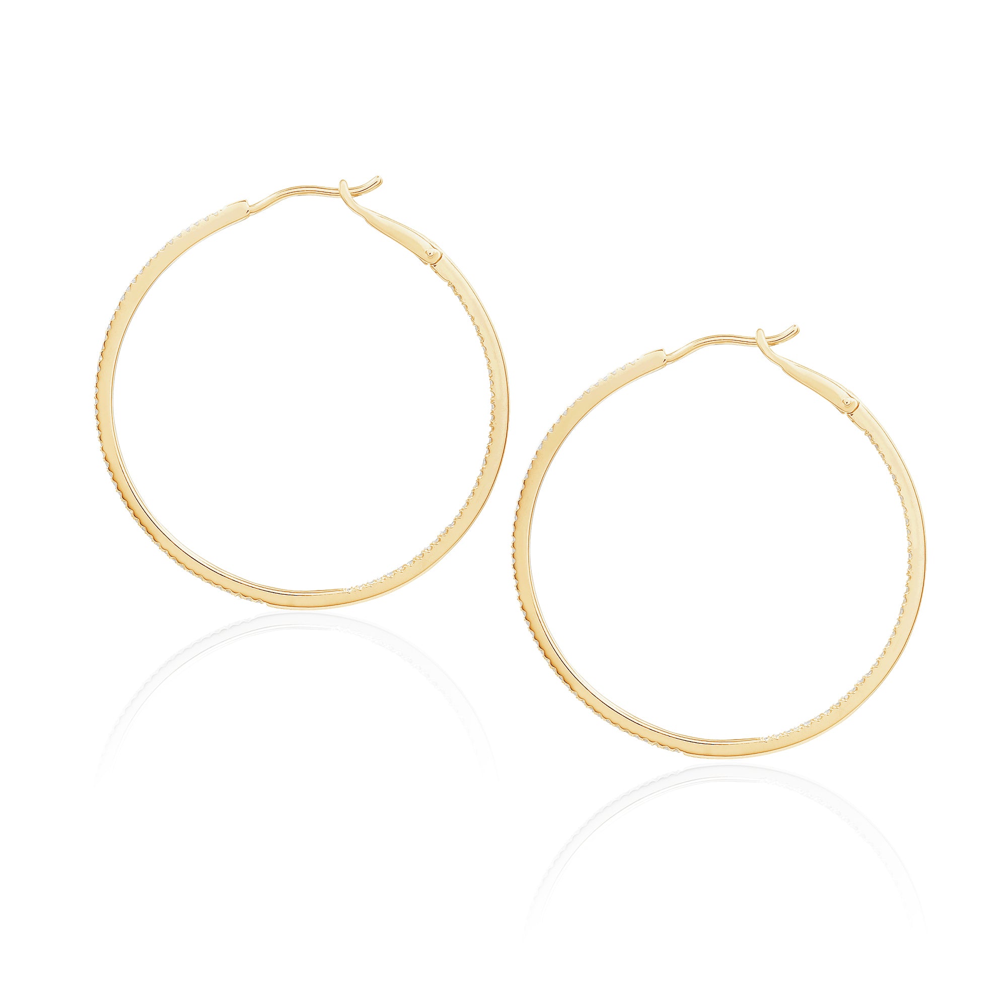 Diamond 39mm Round Skinny Hoop Earrings 14K Yellow Gold (0.39CT)