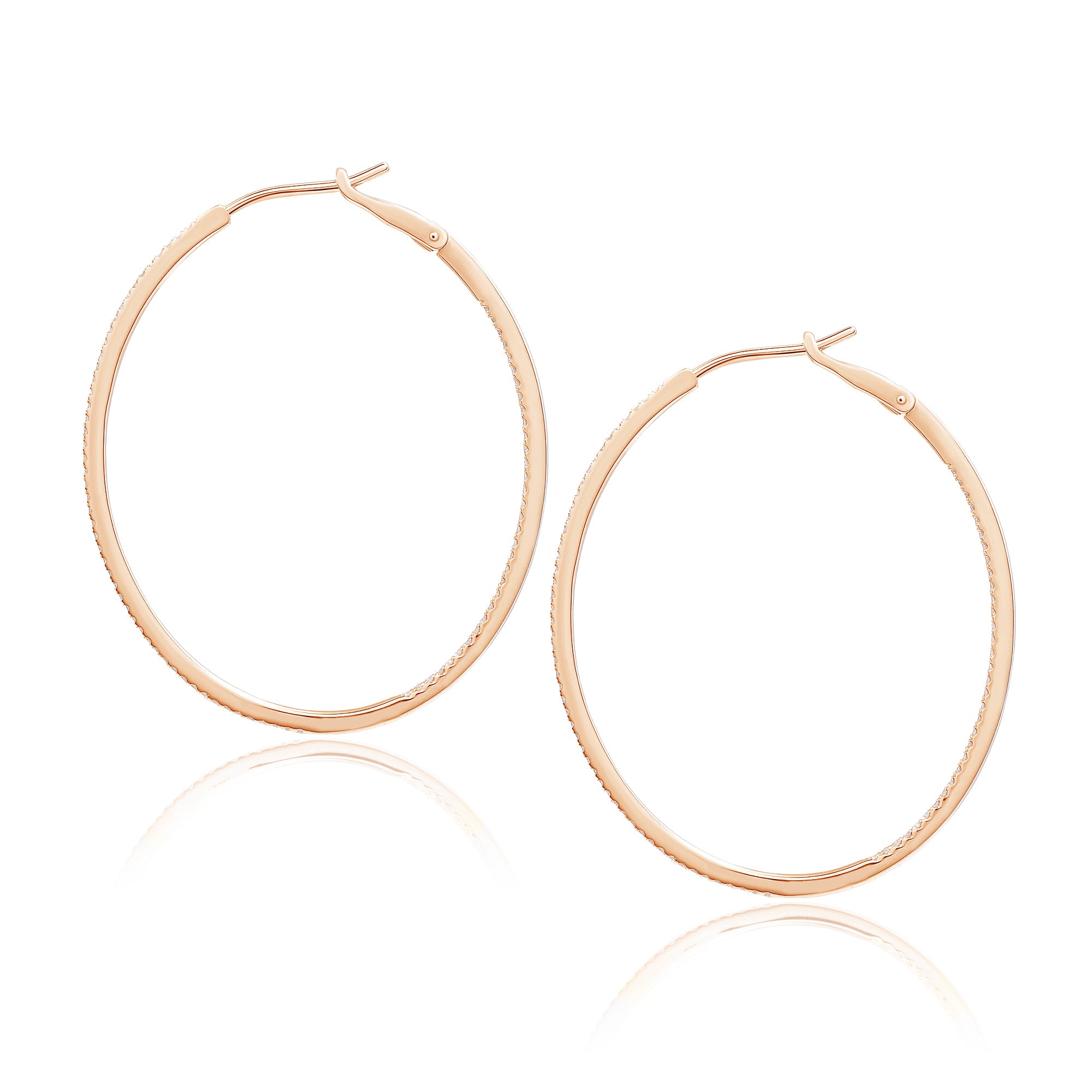 Diamond 42mm Oval Skinny Hoop Earrings 14K Rose Gold (0.48CT)