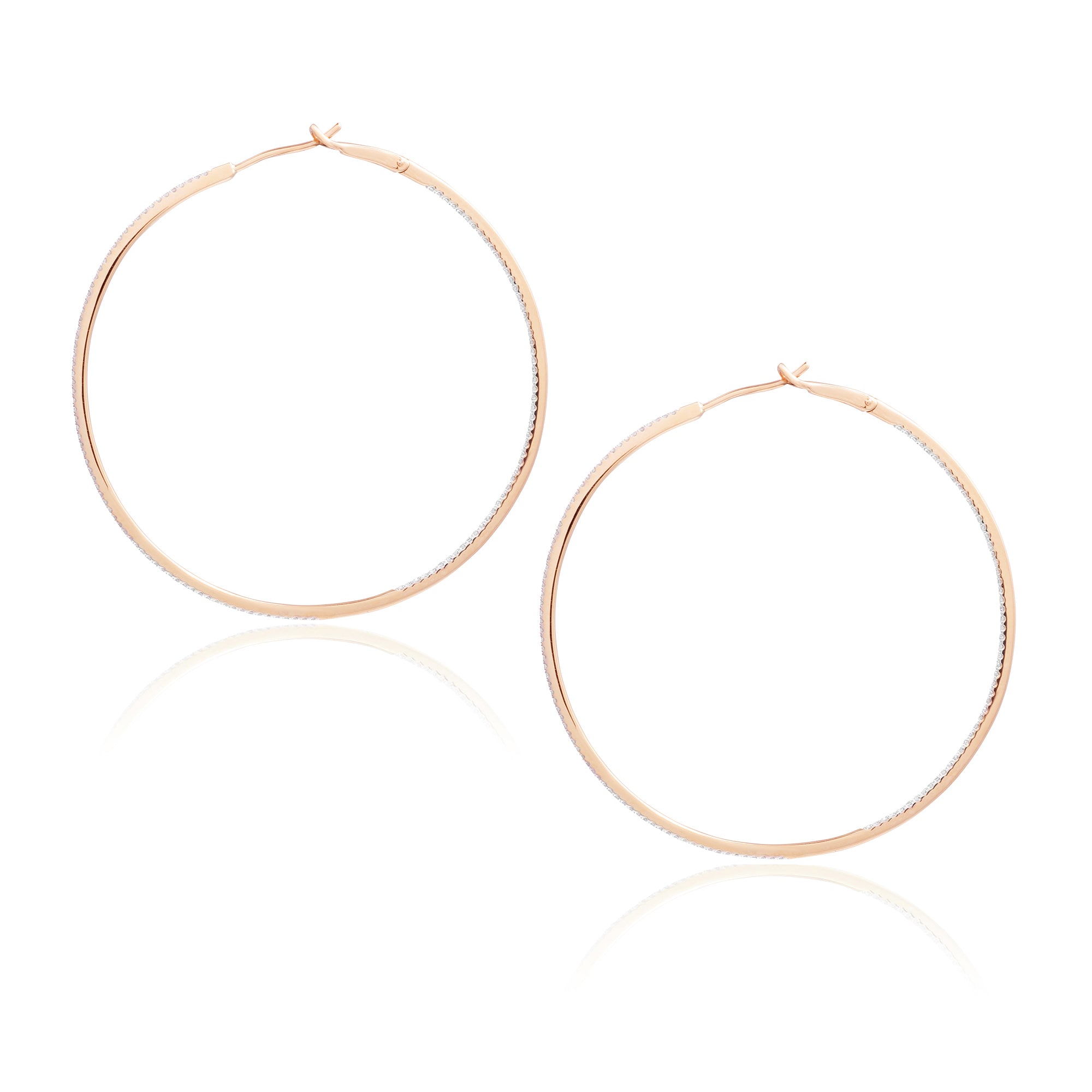Diamond 53mm Round Skinny Hoop Earrings 14K Rose Gold (0.60CT)
