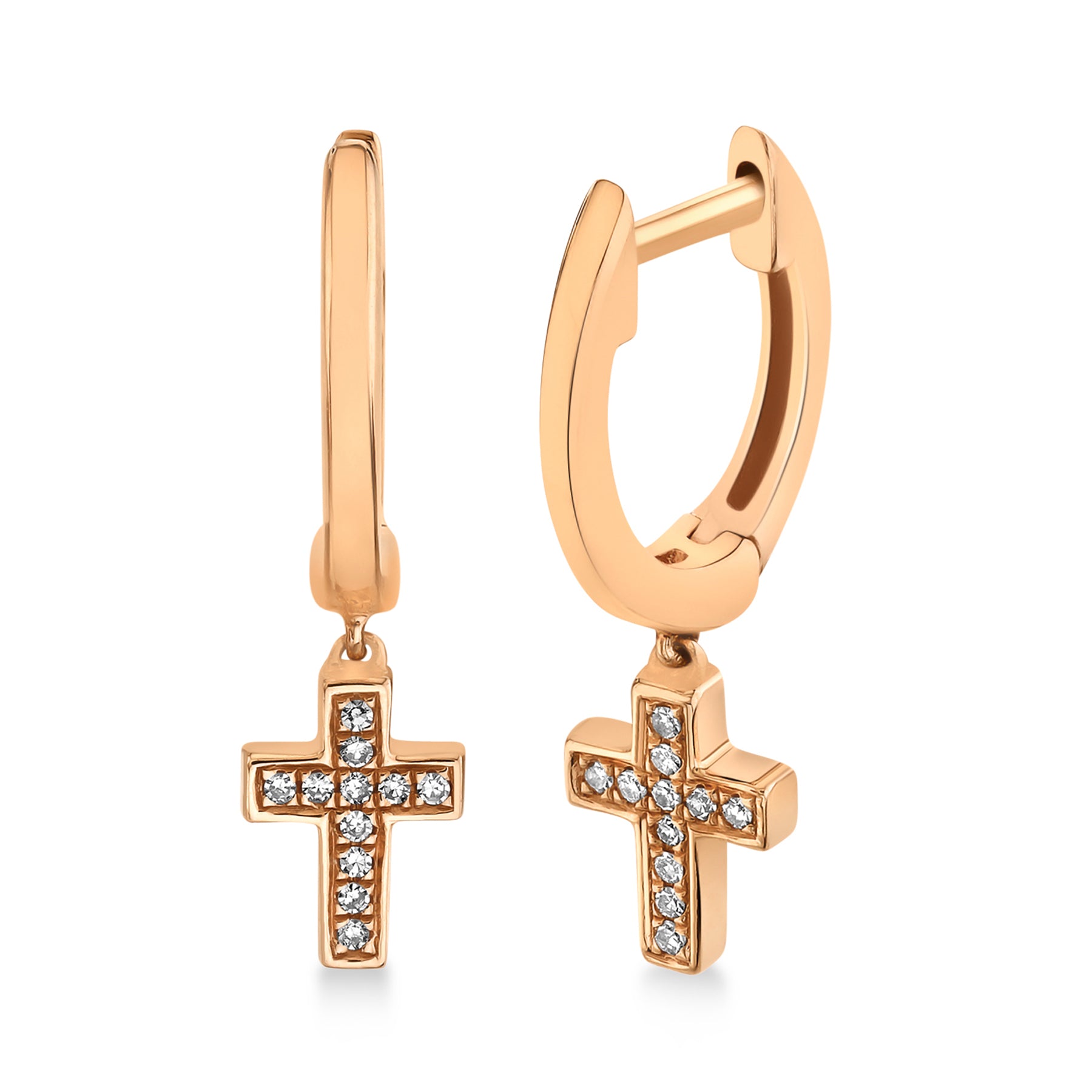 Diamond Accented Cross Drop Huggie Earrings 14k Rose Gold (0.04ct)