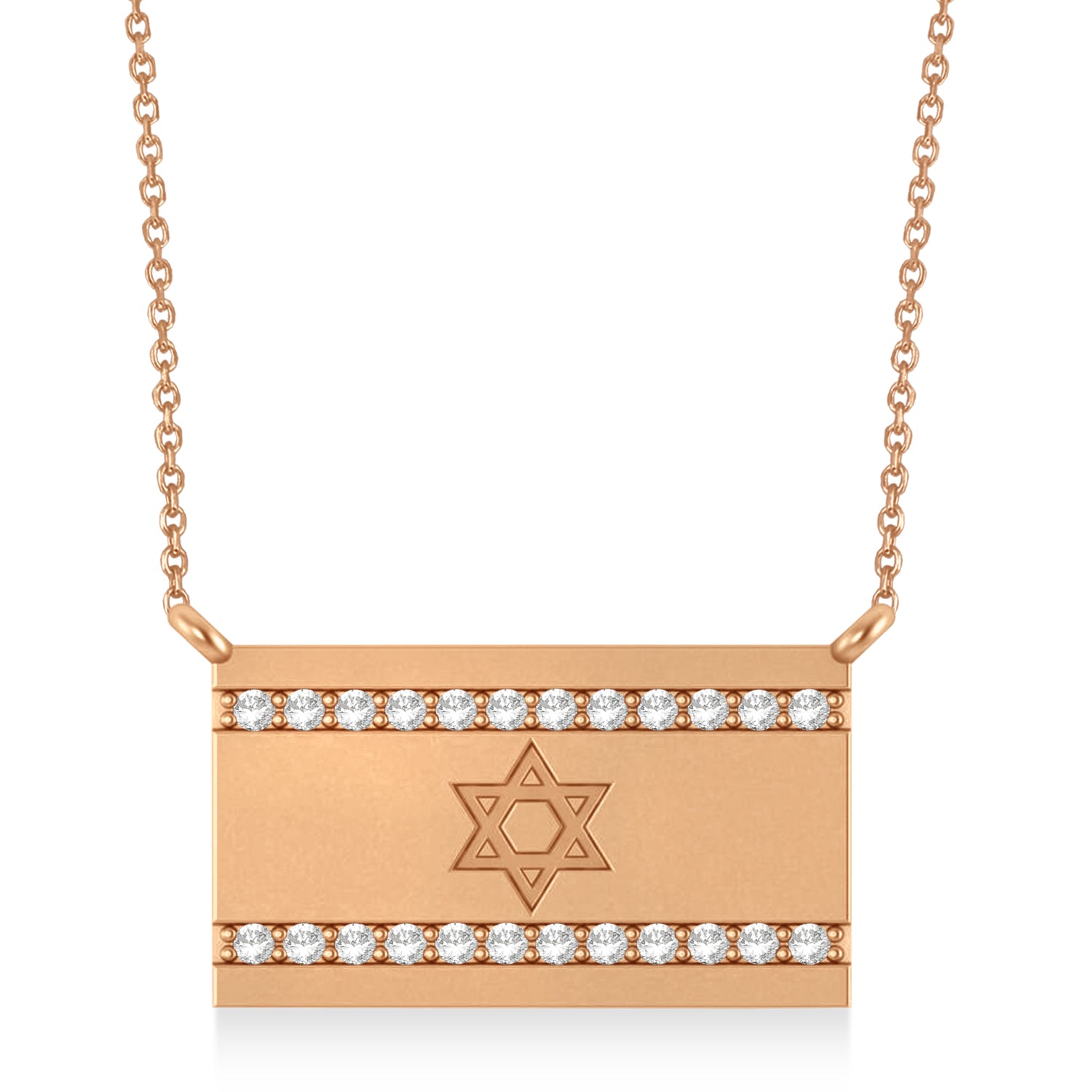 Diamond Accented Israel Flag Pendant Necklace 14K Rose Gold (0.24ct)