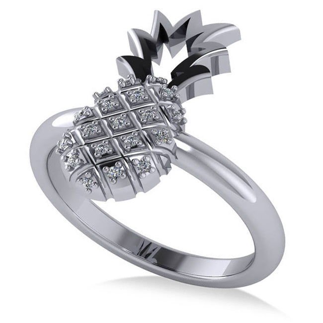 Diamond Accented Pineapple Fashion Ring 14k White Gold (0.10ct)
