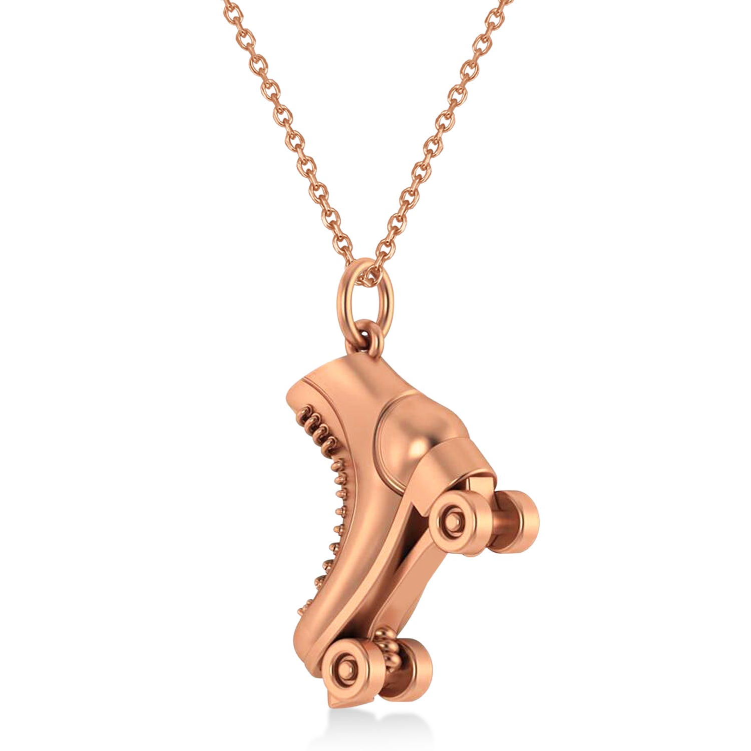 Diamond Accented Roller Skate Pendant Necklace 14K Rose Gold (0.15ct)