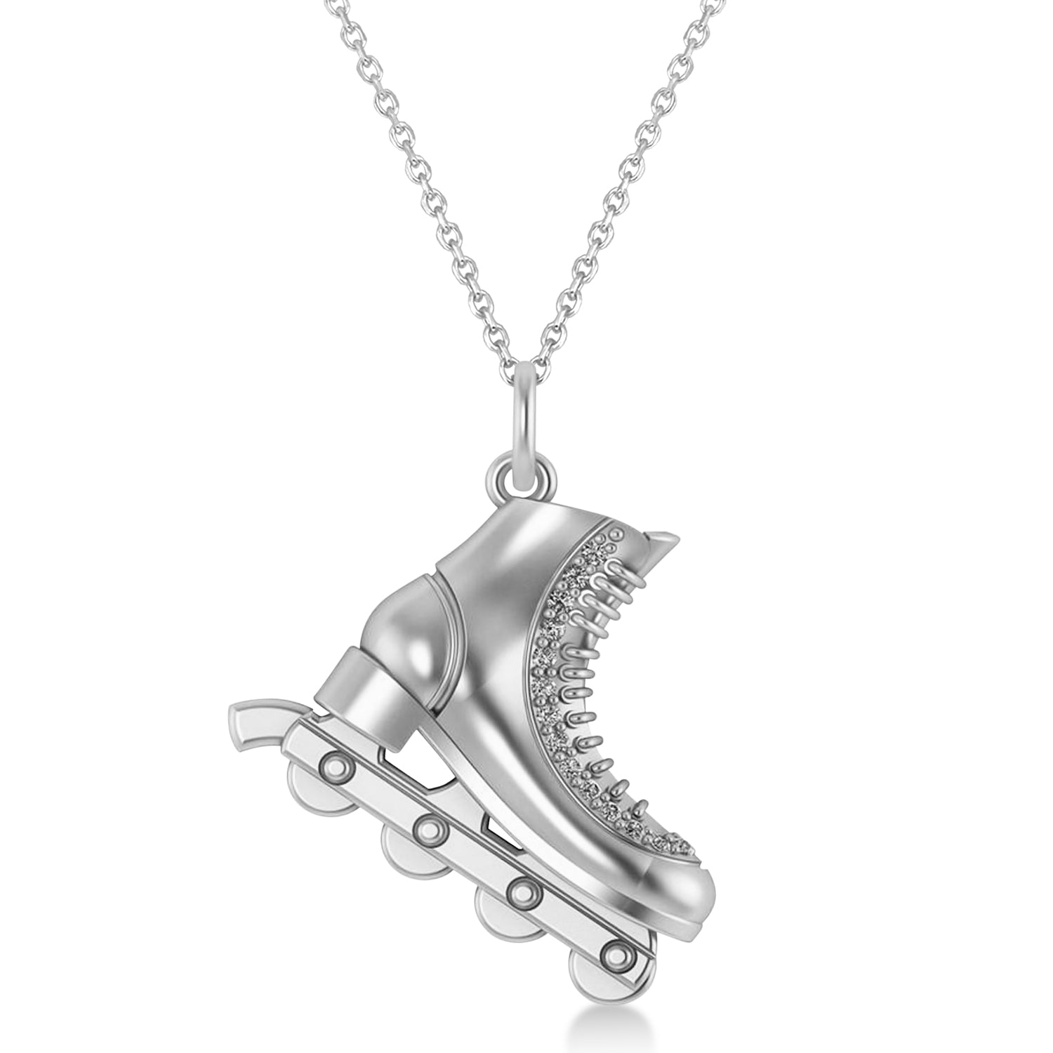 Diamond Accented Rollerblade Pendant Necklace 14K White Gold (0.15ct)