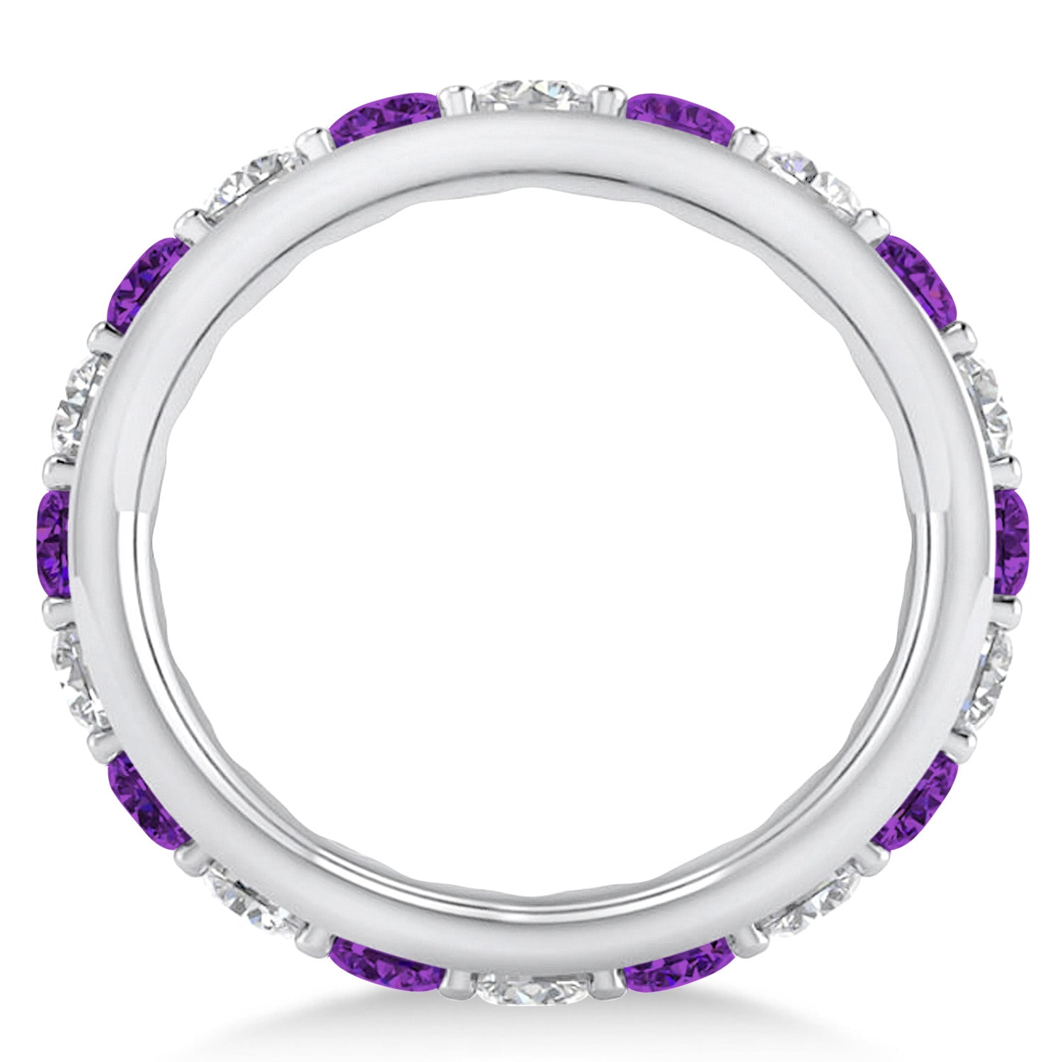 Diamond & Amethyst Eternity Wedding Band 14k White Gold (2.50ct)