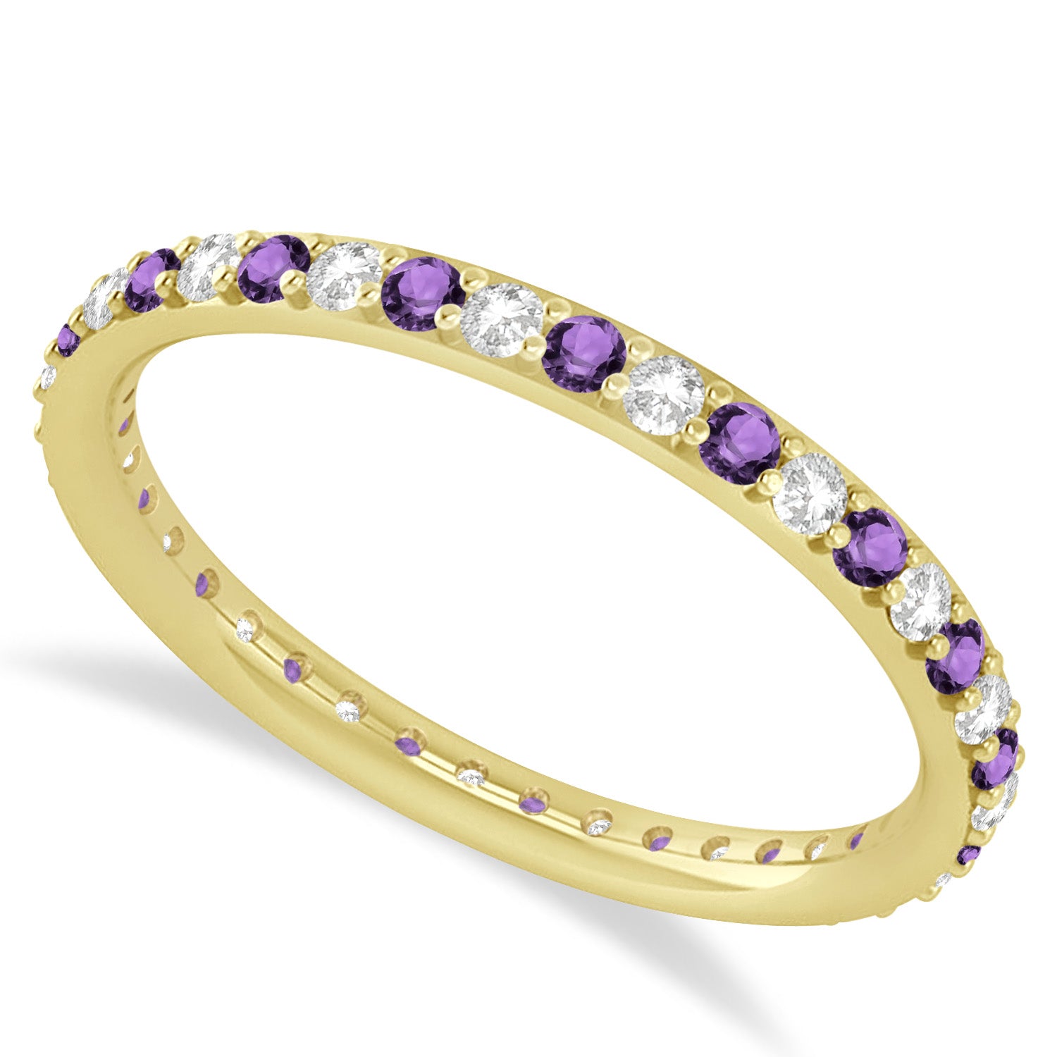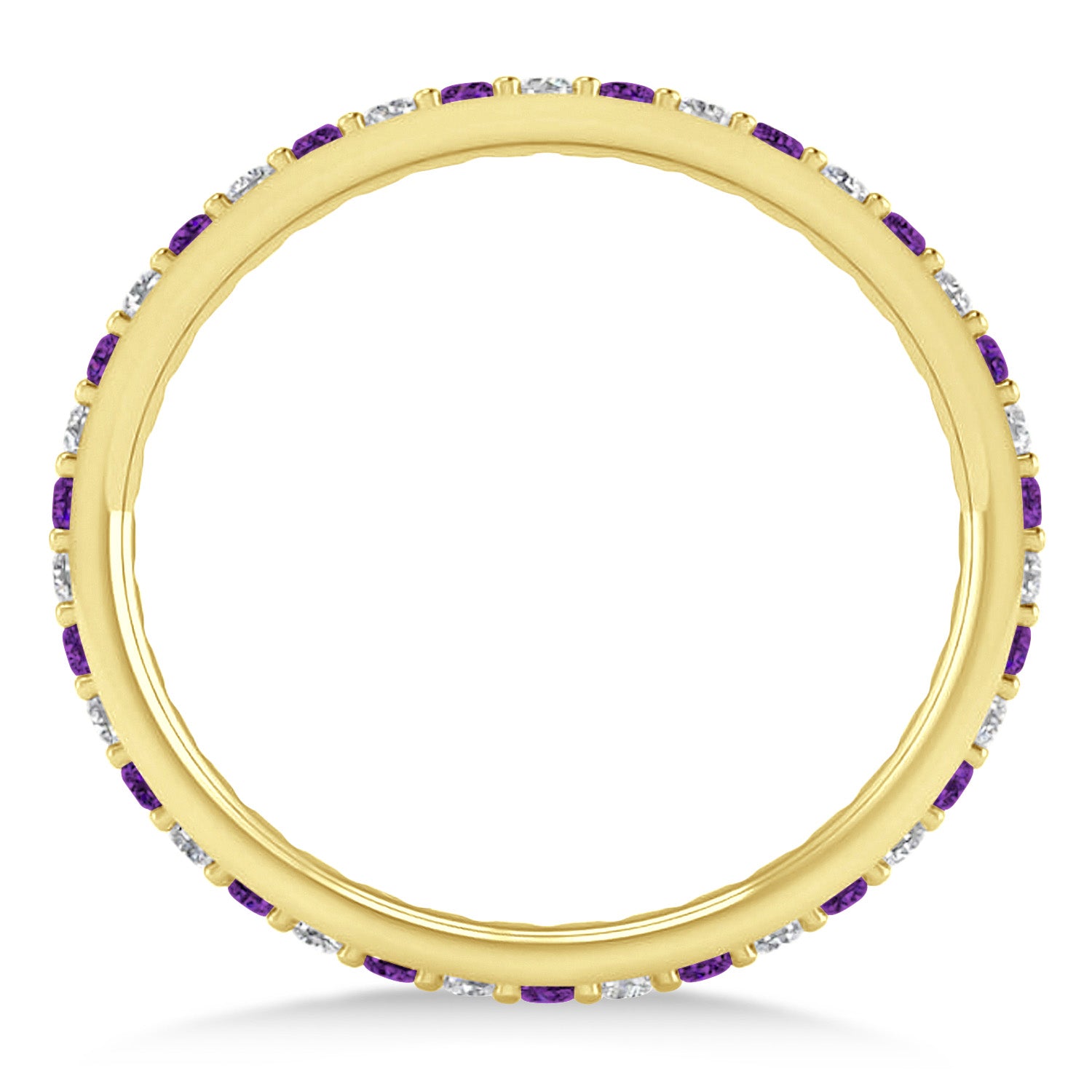 Diamond & Amethyst Eternity Wedding Band 14k Yellow Gold (0.57ct)