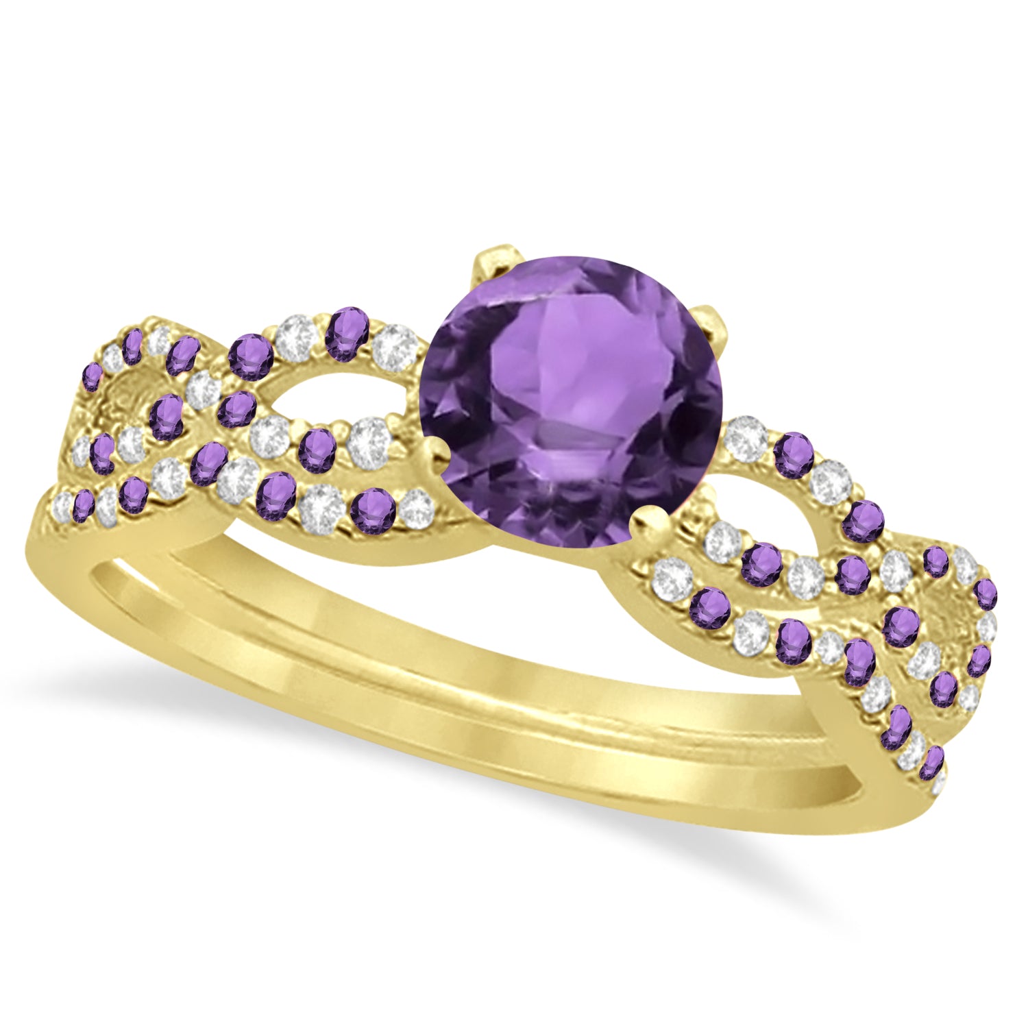 Diamond & Amethyst Infinity Style Bridal Set 14k Yellow Gold 1.94ct