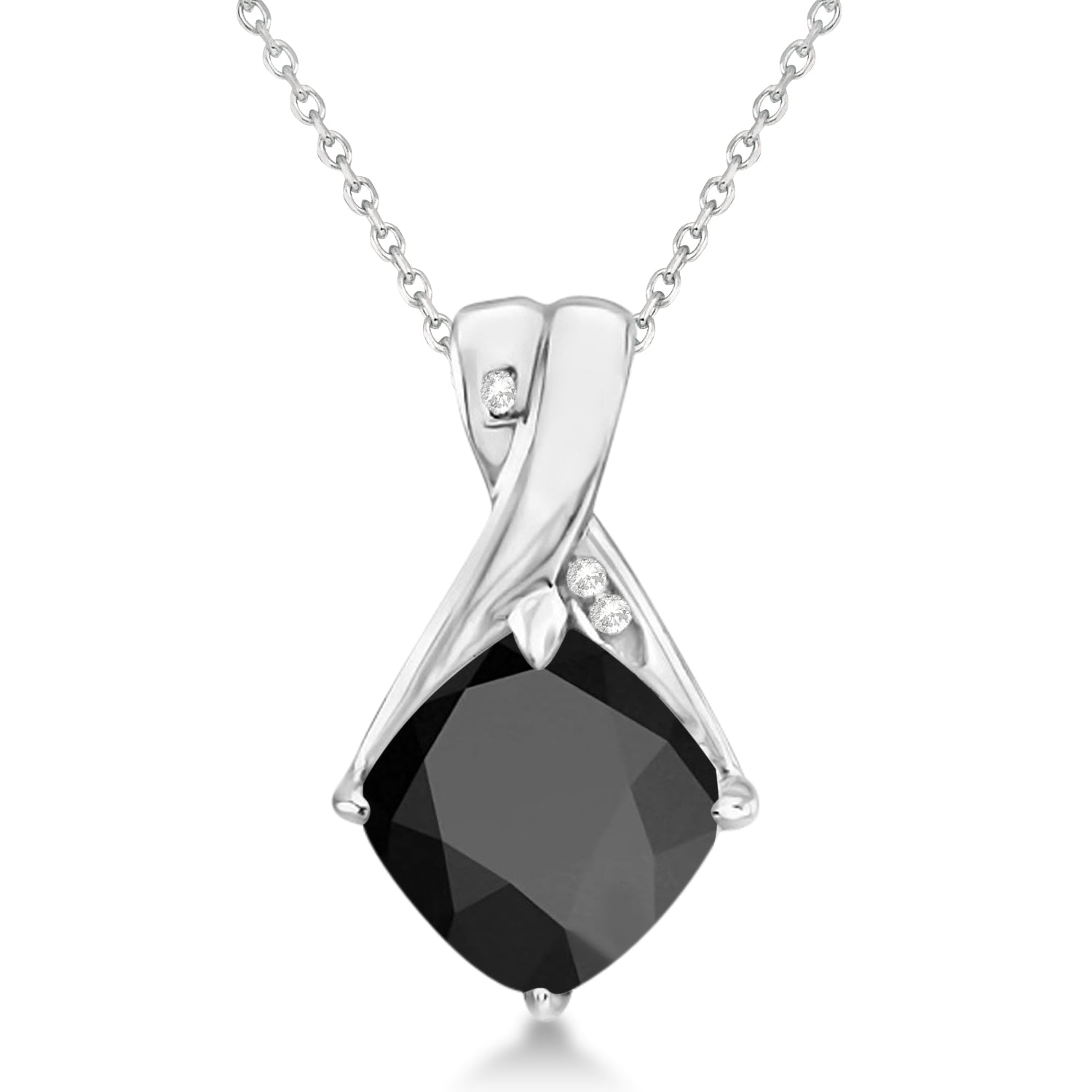 Diamond and Cushion Black Onyx Pendant Necklace 14k White Gold (1.36ct)