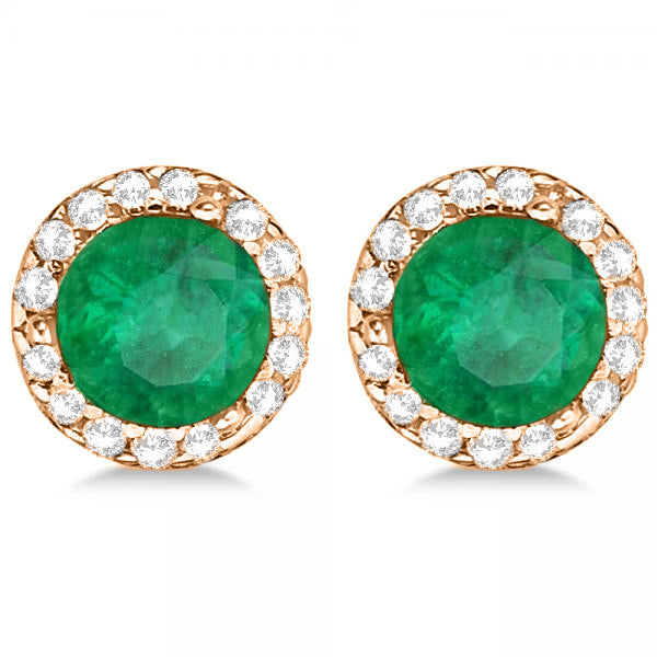 Gold stud earrings are all the rage, and these 14K rose gold diamond and emerald halo earrings are no exception. These gemstone earrings feature genuine emeralds measuring 5mm, set into a fiery ring of near colorless diamonds (1.15tcw) in a halo fashion.