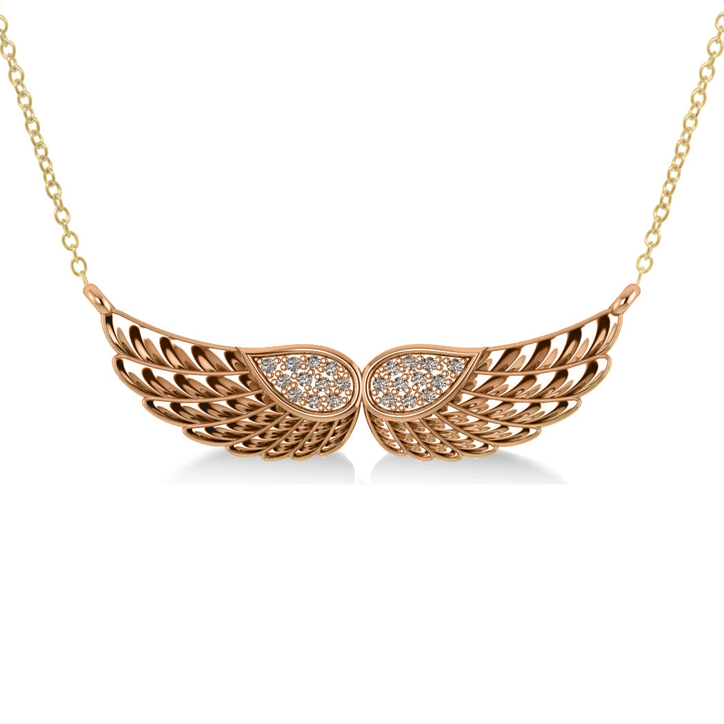 Diamond Angel Wings Pendant Necklace 14k Rose Gold (0.11ct)