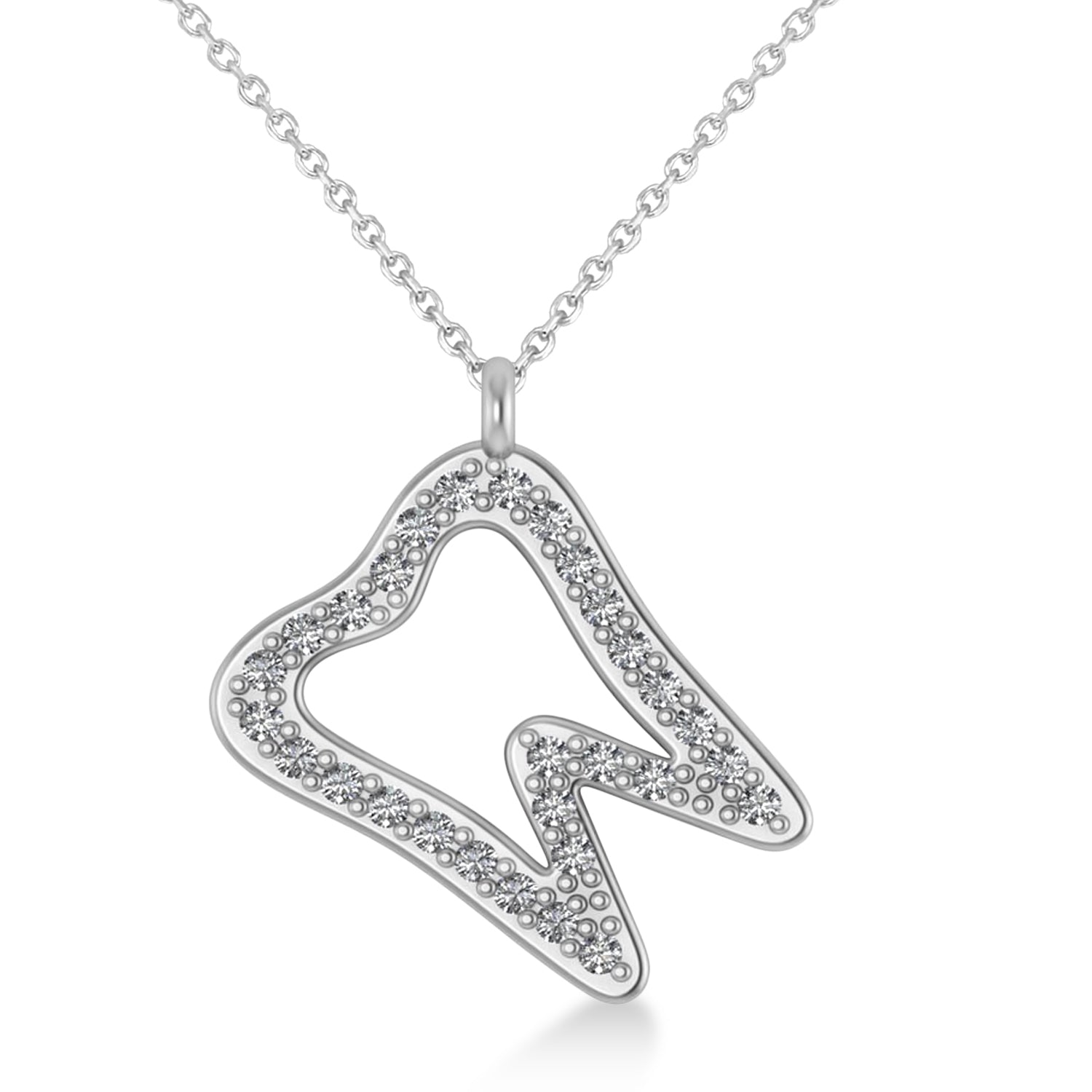 A perfect piece of jewelry for a Dental Hygienist, a Dental Assistant, or a Dentist, this diamond angled tooth outline pendant necklace will surely put a smile on the wearer's face.