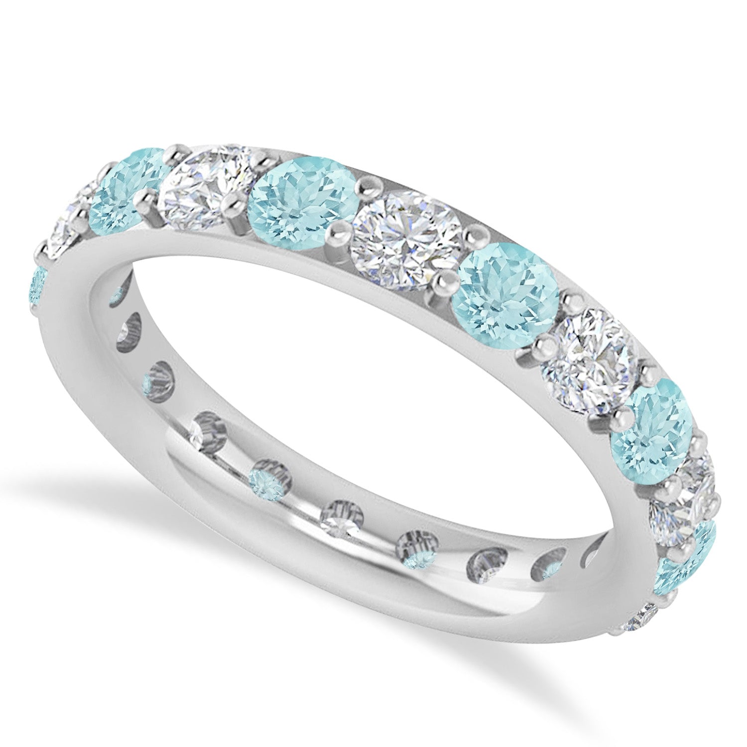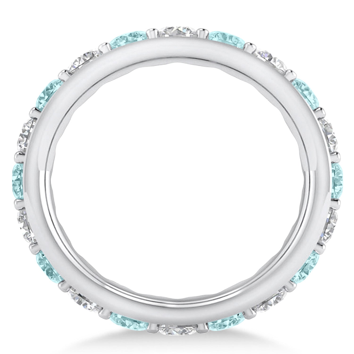 Diamond & Aquamarine Eternity Wedding Band 14k White Gold (2.50ct)