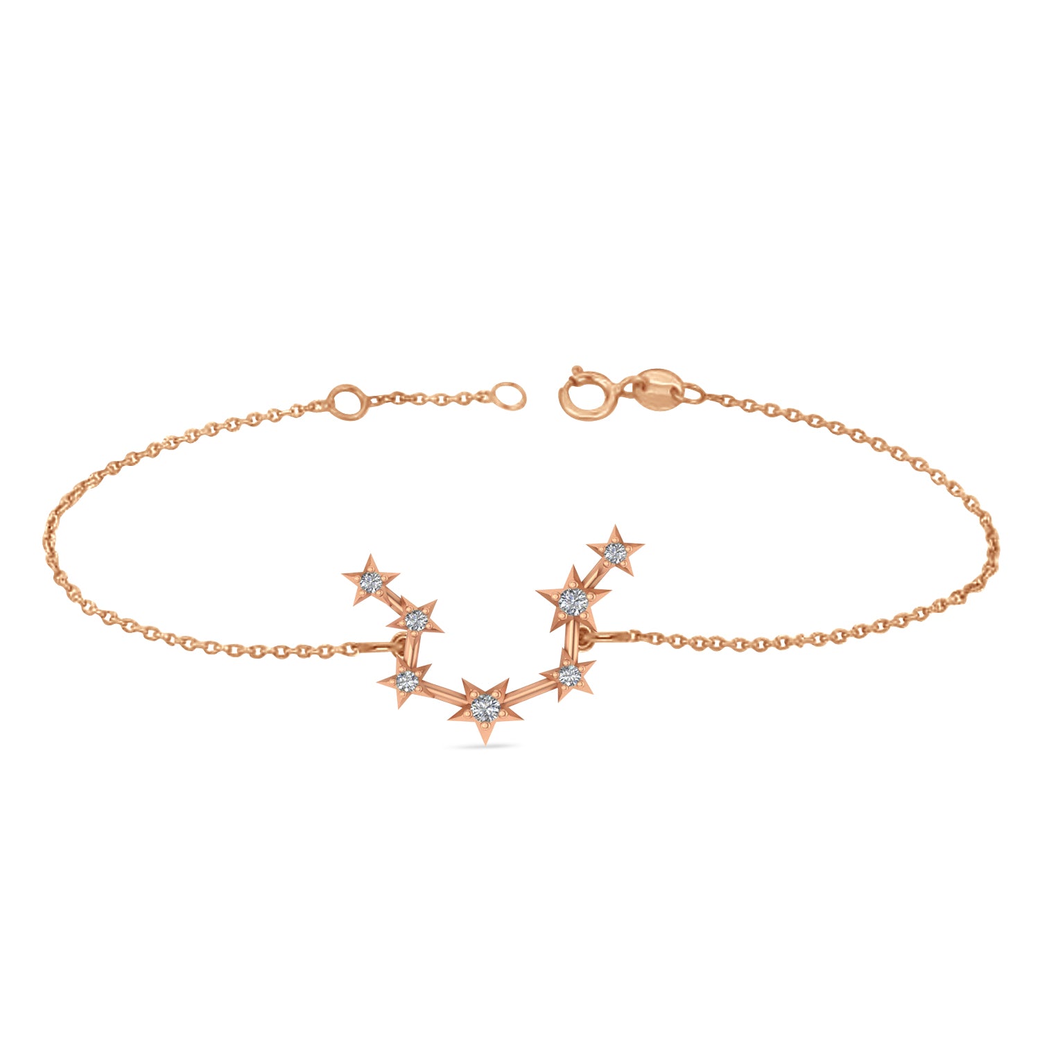Diamond Aquarius Zodiac Constellation Star Bracelet 14k Rose Gold (0.9