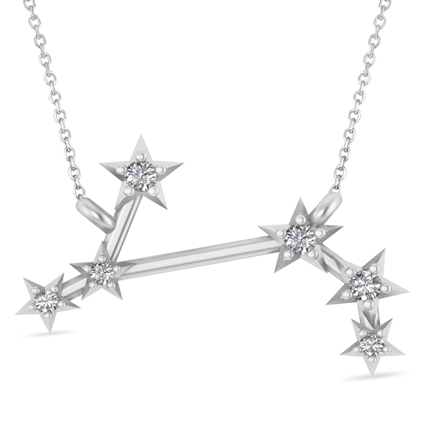 Diamond Aries Zodiac Constellation Star Necklace 14k White Gold (0.07ct)