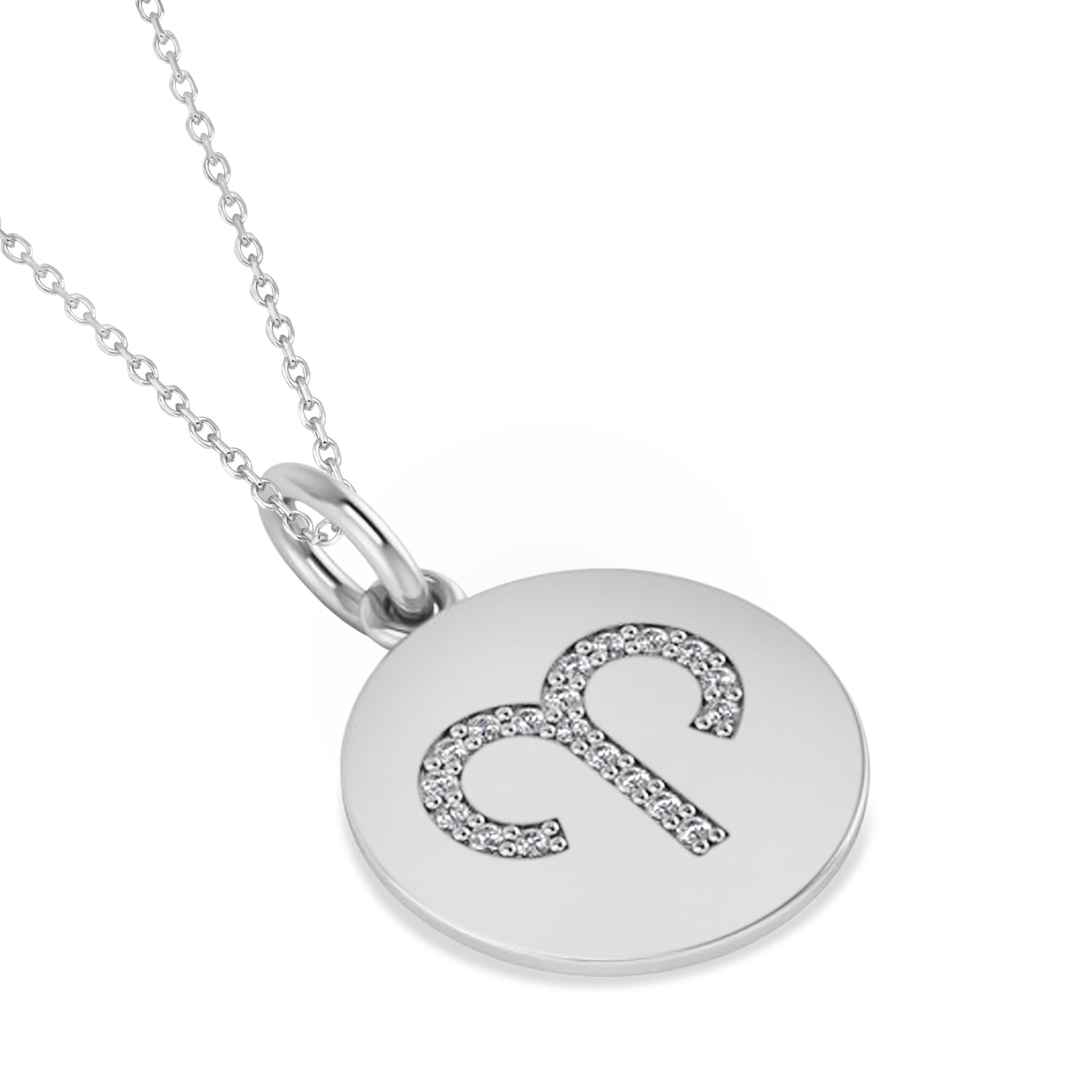 Diamond Aries Zodiac Disk Pendant Necklace 14k White Gold (0.095ct)