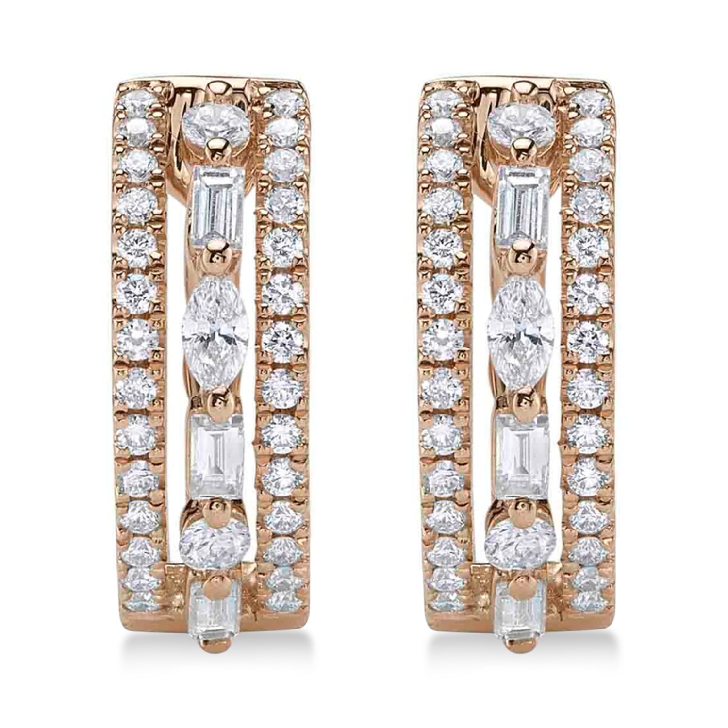 Shop Allurez Diamond Baguette & Marquise Huggie Earrings ? 14K Rose Gold (0.59ct)