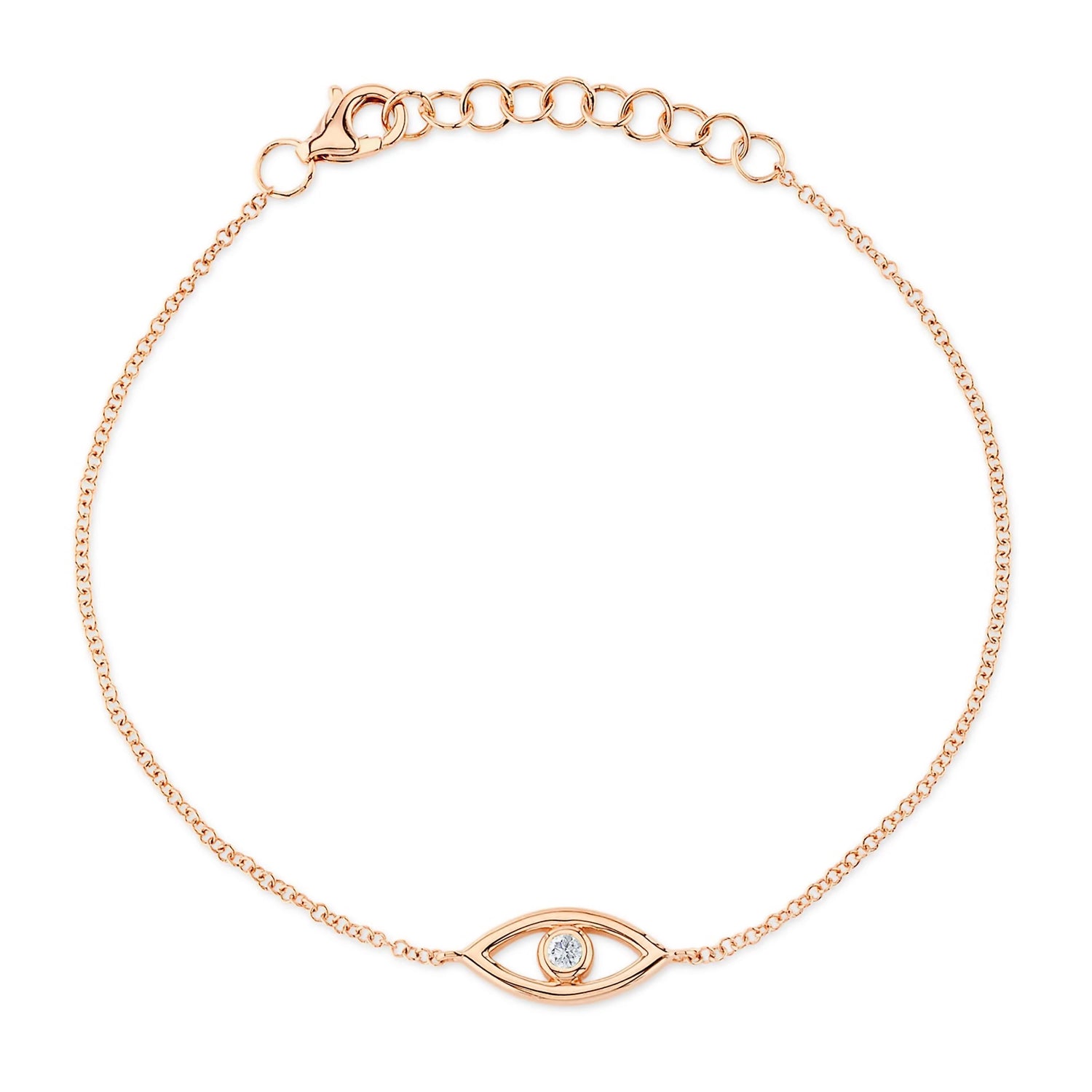 Diamond Bezel Evil Eye bracelet in 14K Rose Gold (0.04ct)
