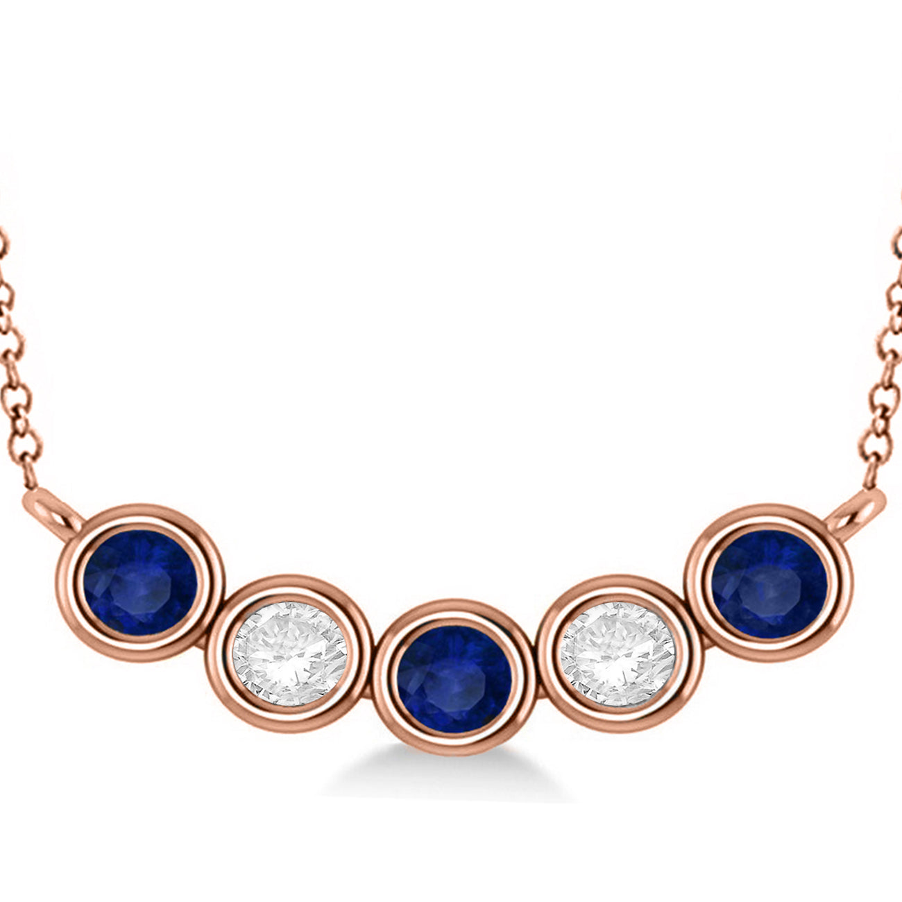 Diamond & Blue Sapphire 5-Stone Pendant Necklace 14k Rose Gold 2.00ct