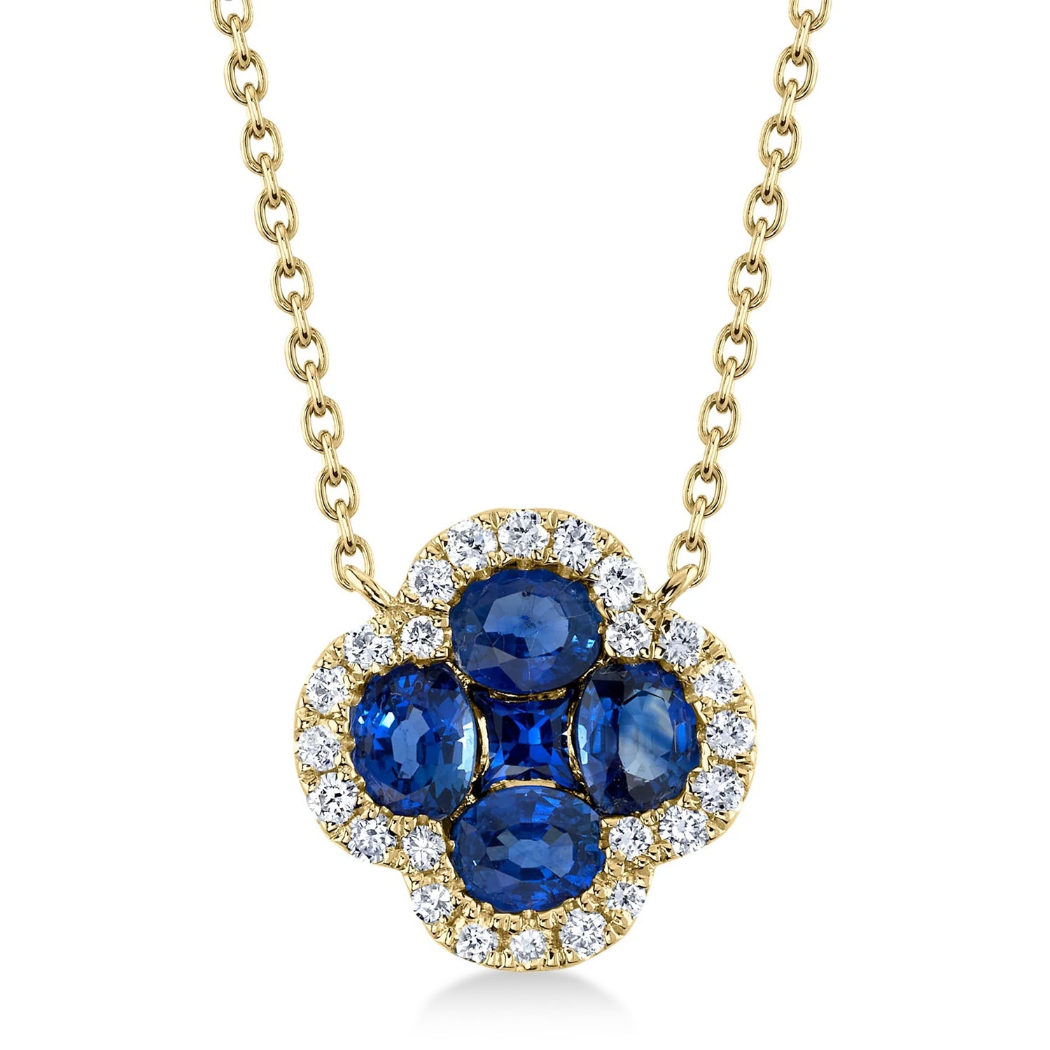 Diamond & Blue Sapphire Clover Pendant Necklace 14K Yellow Gold (1.30ct)