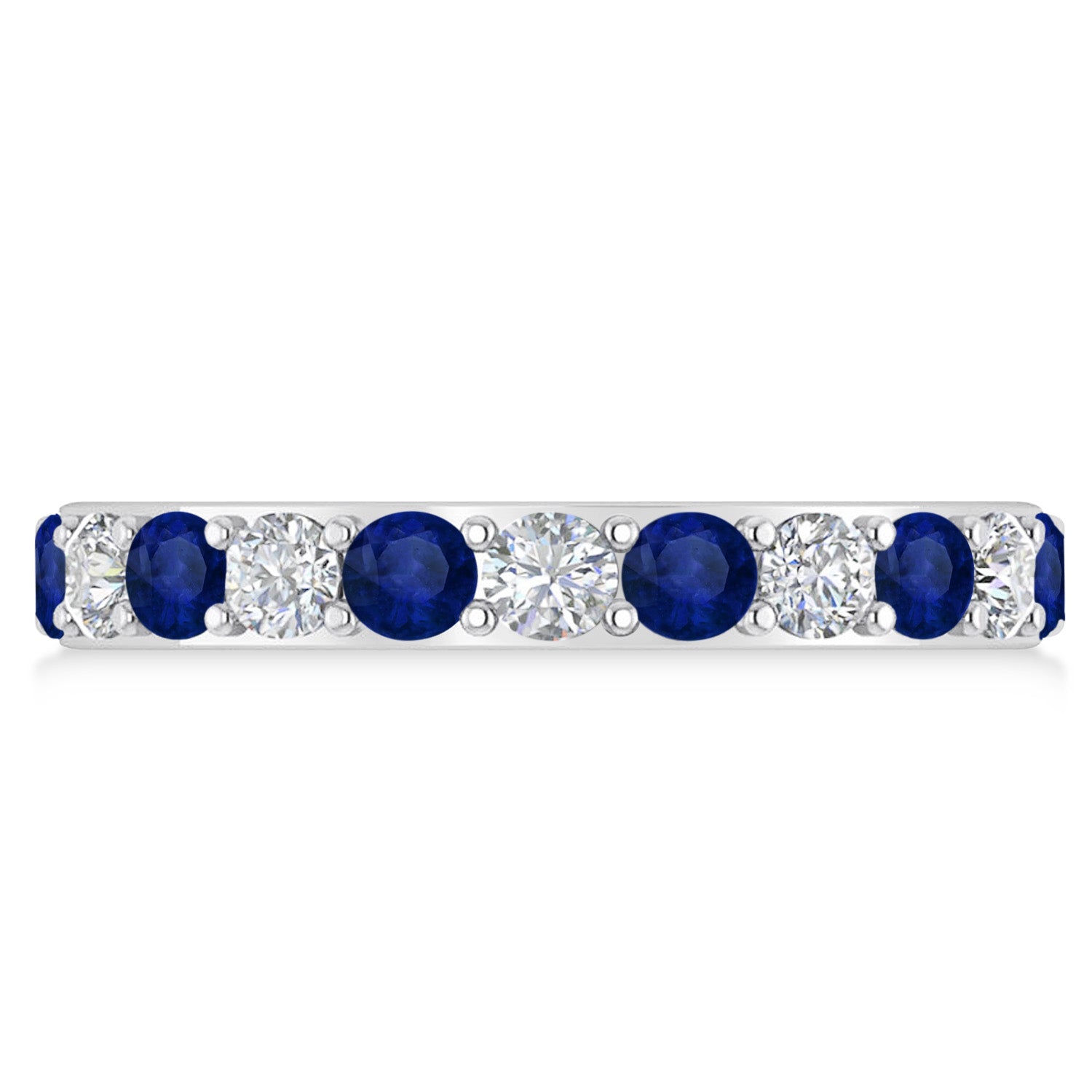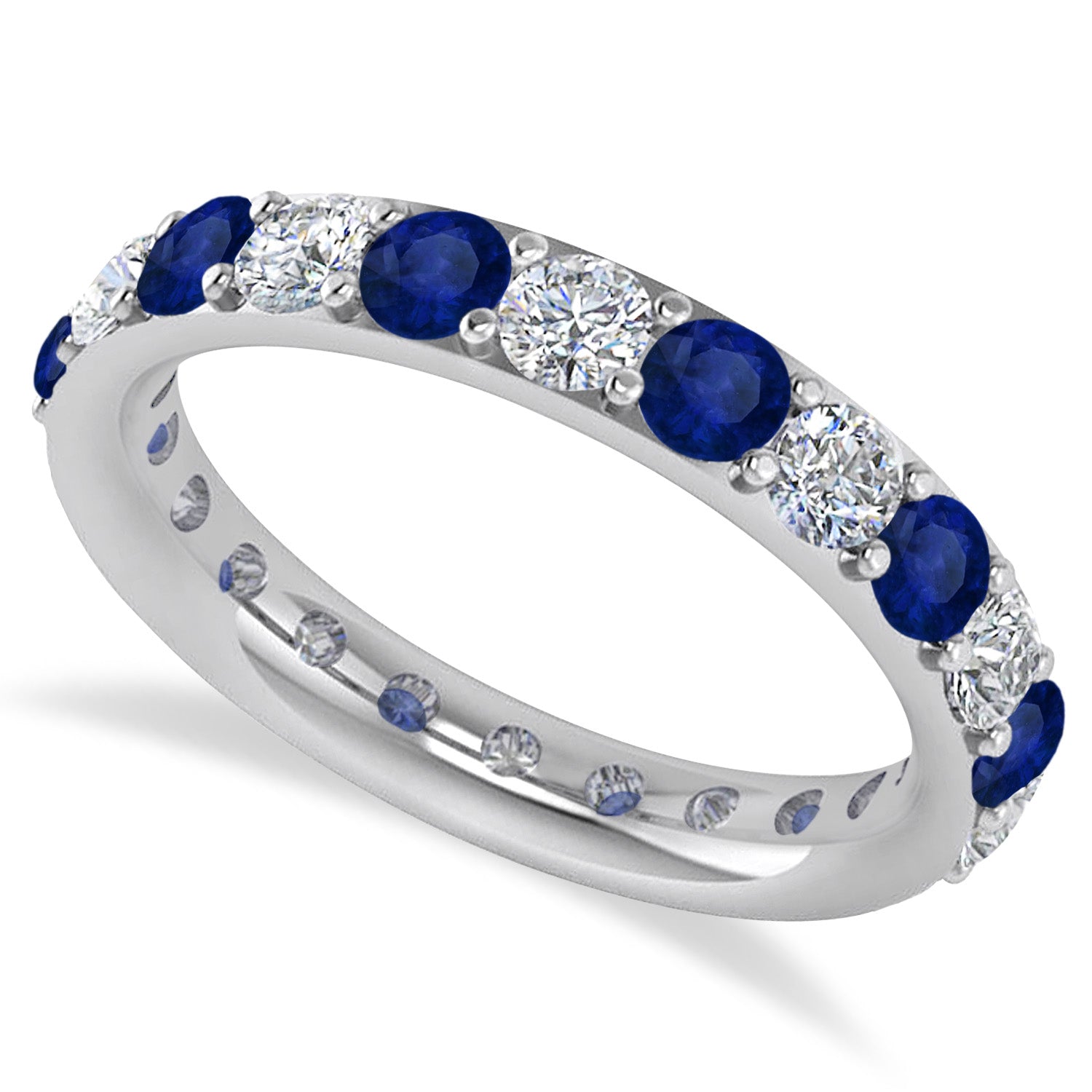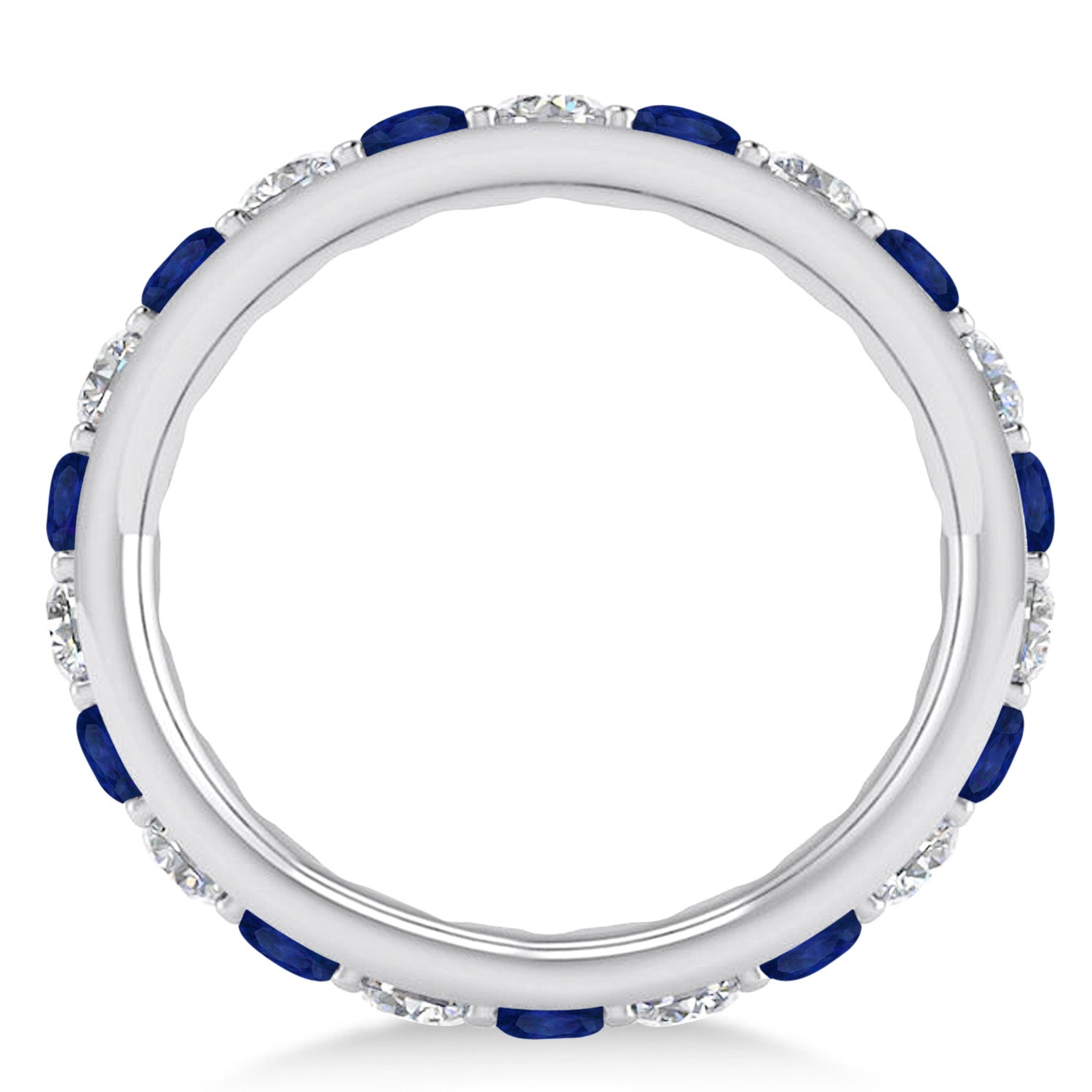 Diamond & Blue Sapphire Eternity Wedding Band 14k White Gold (2.00ct)