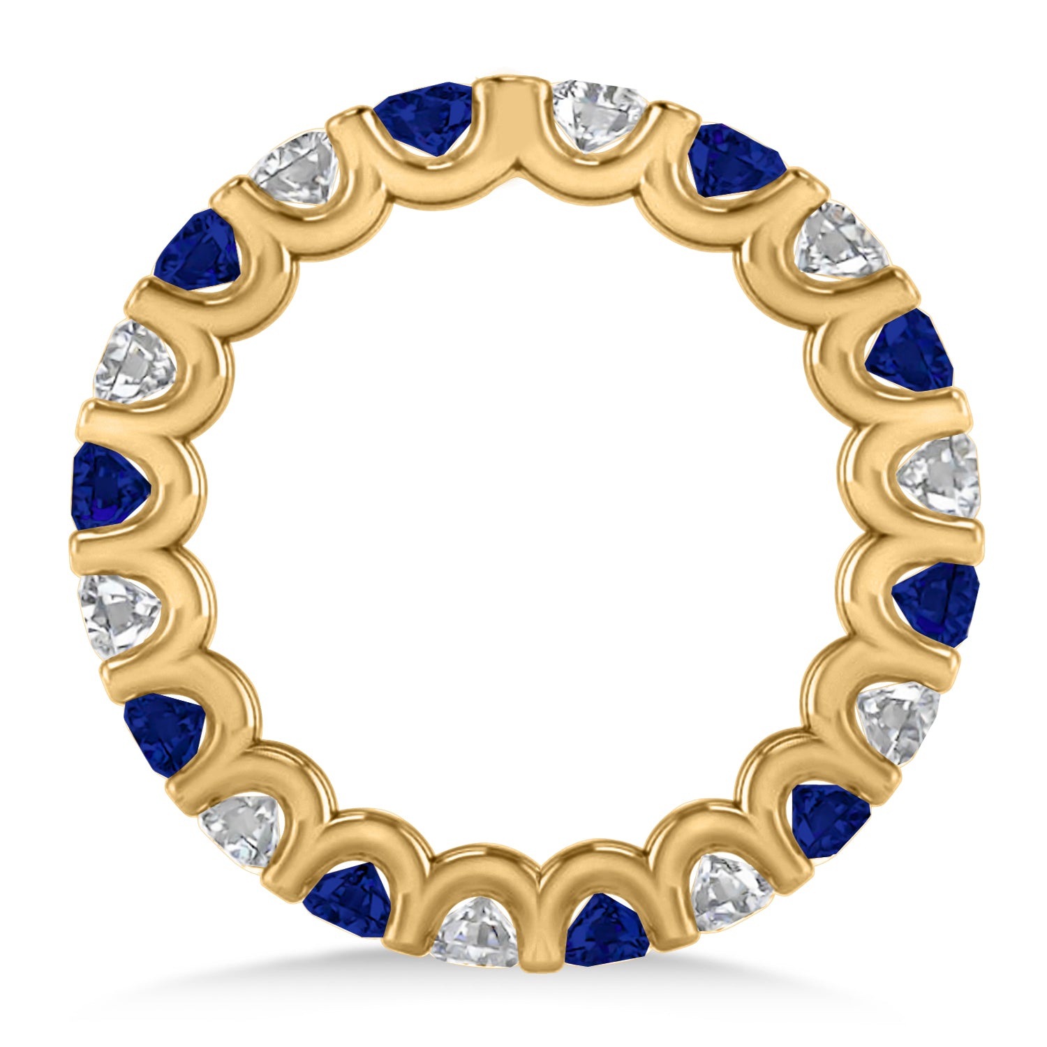 Diamond & Blue Sapphire Eternity Wedding Band 14k Yellow Gold (2.10ct)